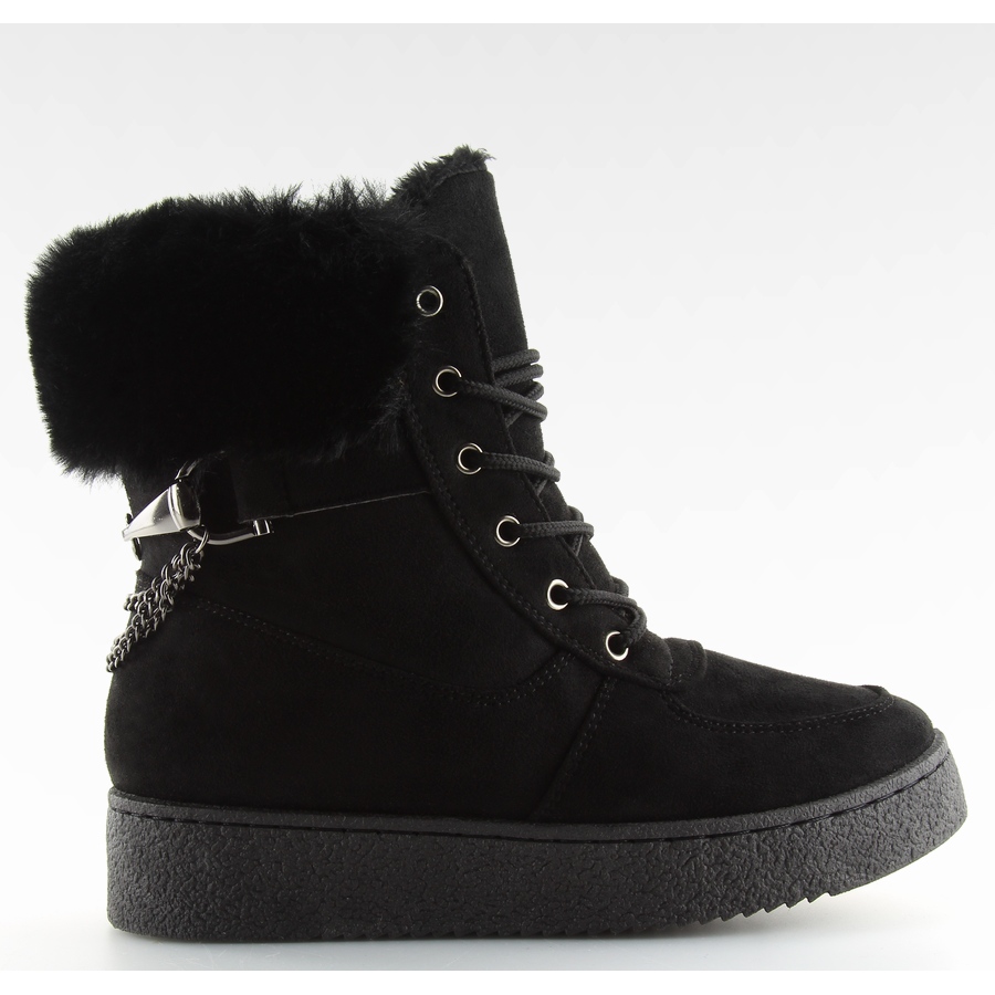 Les bottes de neige à lacets GF-196 sont une proposition pour les femmes qui apprécient le confort et un look tendance même à basse température. Fabriquées en daim écologique, isolées avec une fourrure épaisse, elles isolent efficacement du sol froid, et la semelle haute (3,5 cm) assure confort et stabilité. Une fourrure élégante autour de la tige et des chaînes décoratives à l'arrière ajoutent un caractère original aux chaussures.