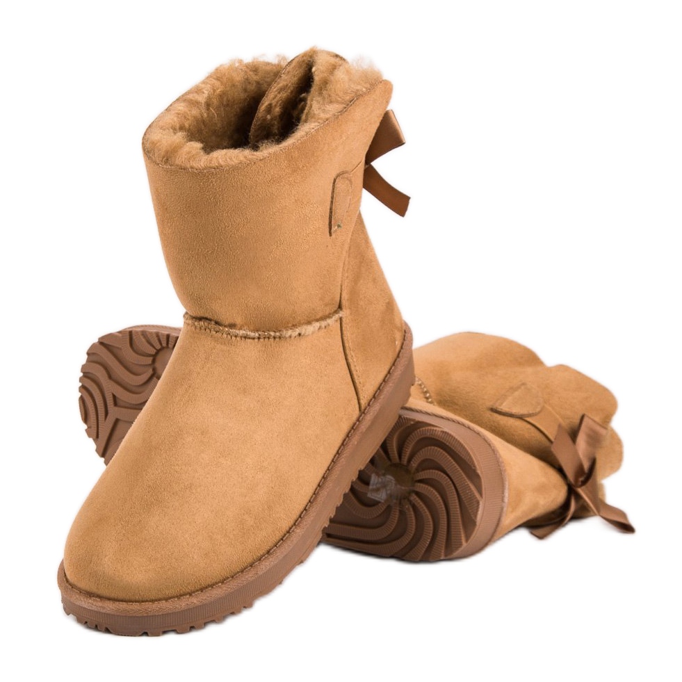 Détails: Bottes de neige camel avec un nœud brun
