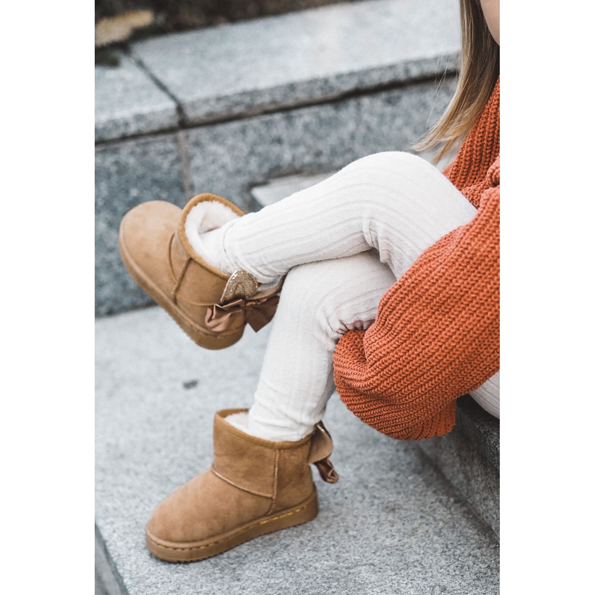 Le modèle se distingue par une plate-forme délicate qui ajoute un peu de hauteur et en même temps de stabilité, ce qui rend le jeu dans la neige encore plus agréable. Les grands nœuds et les oreilles brillantes à l'arrière des chaussures leur confèrent un charme féminin, et toutes les petites fashionistas y prêteront certainement attention.