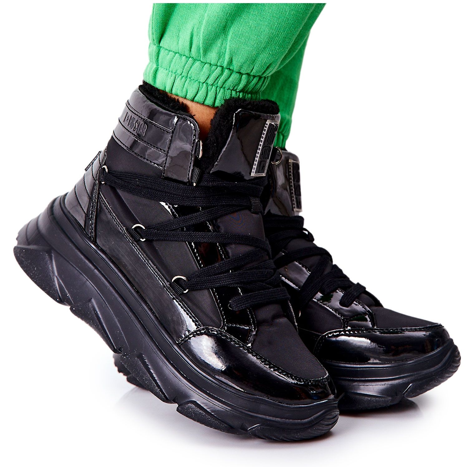 Êtes-vous à la recherche de bottes de neige chaleureuses, confortables et élégantes pour l'hiver? Le modèle Big Star II274311 combine des solutions pratiques avec un look à la mode. L'intérieur est bordé de fourrure douce, et l'insert en mousse à mémoire offre un ajustement parfait au pied, l'amorti et le confort tout au long de la journée. La partie extérieure faite d'éco-cuir avec une finition verni donne aux chaussures un brillant noir élégant.