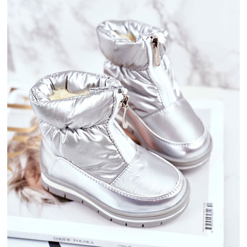 Nous vous présentons les bottes de neige pour enfants WEESTEP, qui deviendront le compagnon idéal lors des aventures hivernales de votre enfant ! Ces bottes argentées sont non seulement attrayantes en apparence, mais surtout d'excellente qualité et de confort. L'intérieur des chaussures est doublé de laine naturelle, qui procure une chaleur agréable même les jours les plus froids.