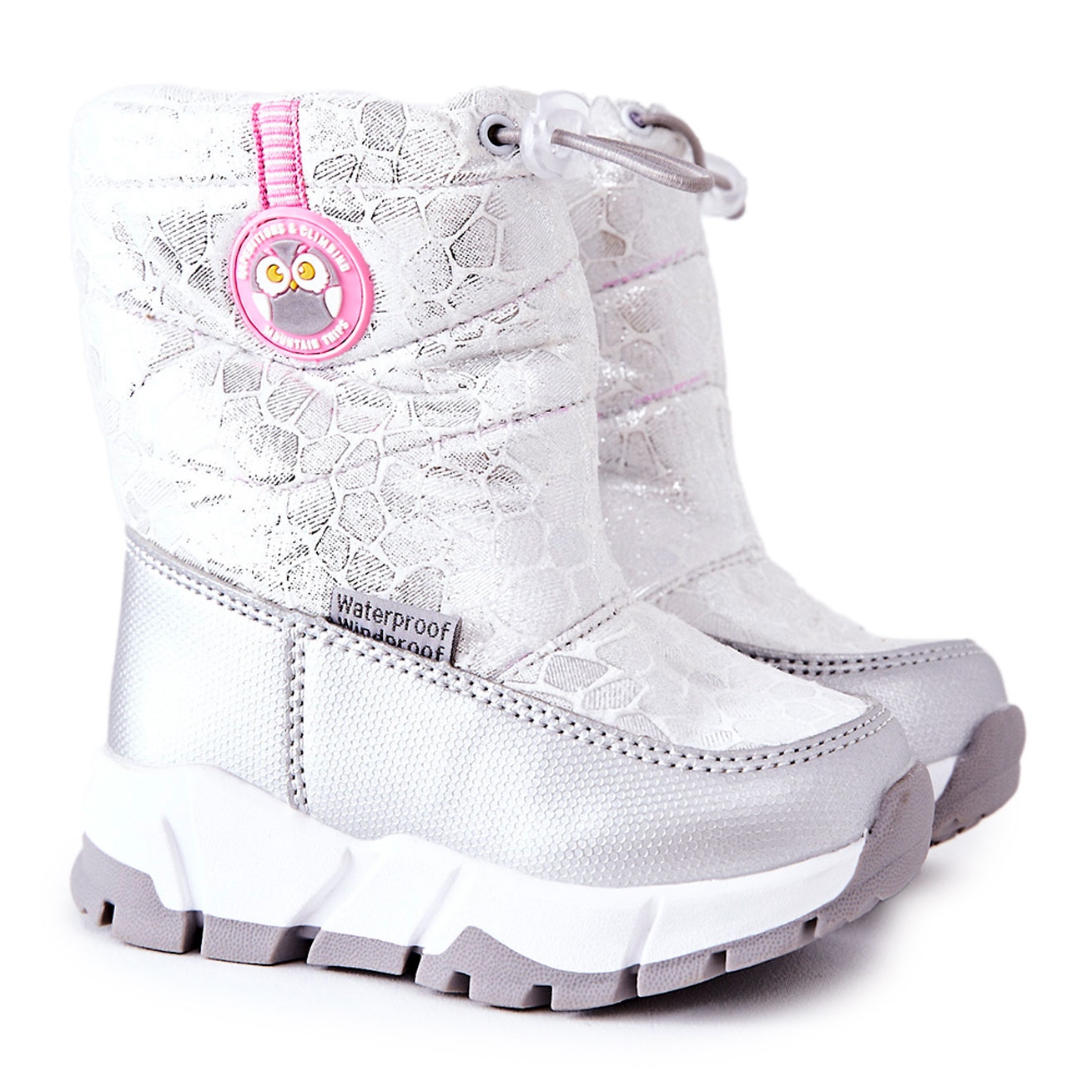 Découvrez les bottes de neige zippées isolées PJ2 Laoth pour enfant en argent et blanc, des chaussures parfaites pour les aventures hivernales ! Ces bottes de neige uniques ont été conçues pour le confort et la sécurité des enfants. Grâce à l'isolation en peau de mouton et au matériau imperméable, ils vous garderont au chaud et au sec même les jours les plus froids.