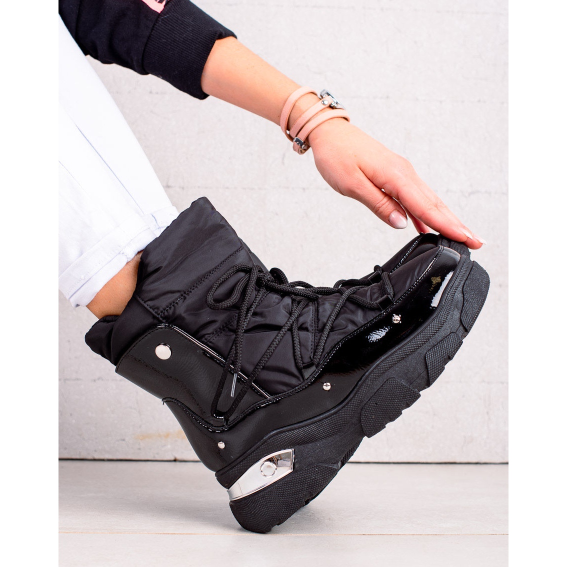 Les bottes de neige W. Potocki sont un excellent choix pour les femmes à la recherche de chaussures non seulement à la mode mais aussi confortables au quotidien. Ils sont parfaits aussi bien pour les conditions urbaines que pour les promenades hivernales. Ils apportent non seulement de la chaleur, mais aussi un look élégant grâce à leur design simple et noir sans motif.