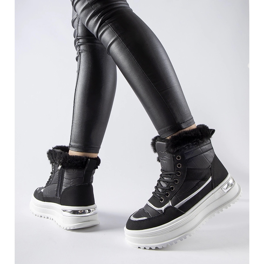 Bottes de neige de sport Trieste noires avec fourrure