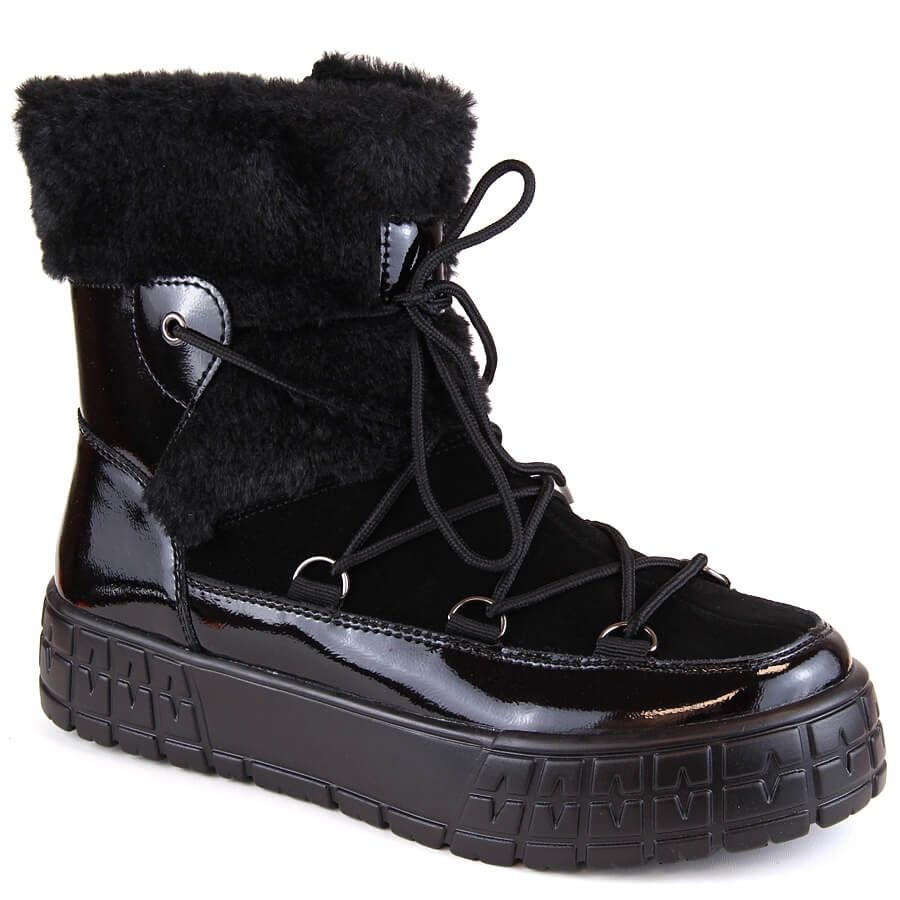 - Modèle: Bottines de neige à lacets avec fourrure vernie