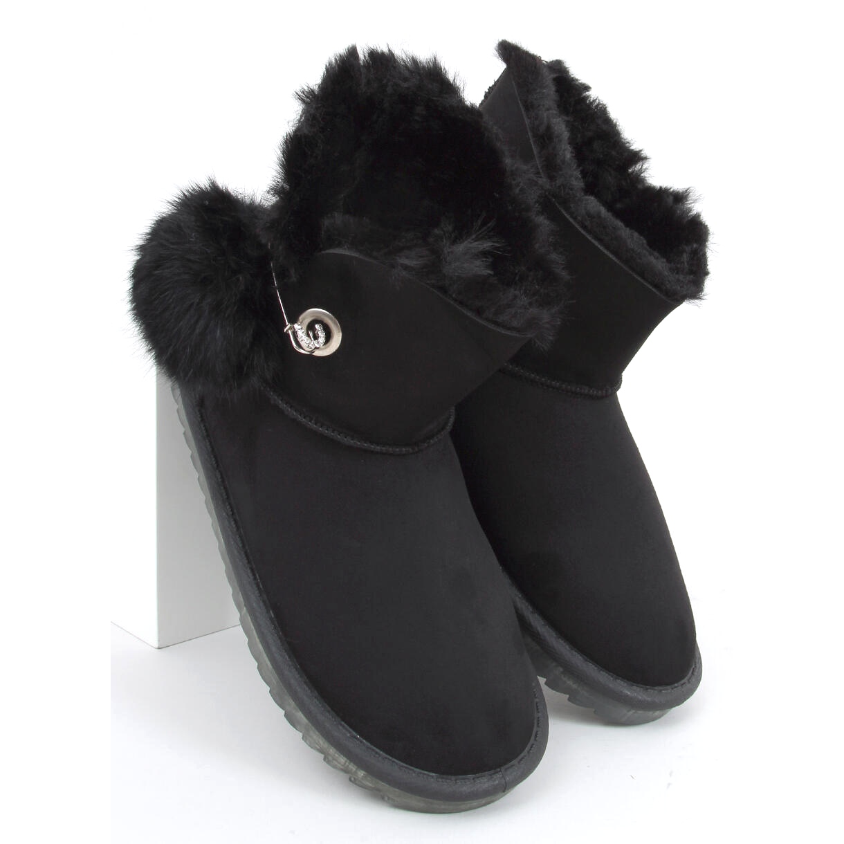 Cherchez-vous des chaussures confortables et chaudes pour les jours froids? Les femmes noires Emuss sont une combinaison d'apparence classique et de solutions pratiques. La tige en daim en matière écologique et une fourrure douce à l'intérieur offrent un confort thermique, et une épingle de sécurité décorative avec un pompom ajoute du charme et un accent de mode.