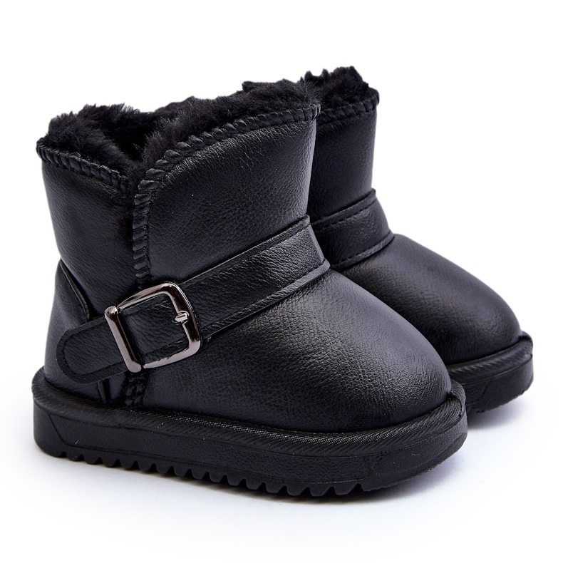 Bottes de neige en cuir écologique pour enfants avec sangle, noir Orinor