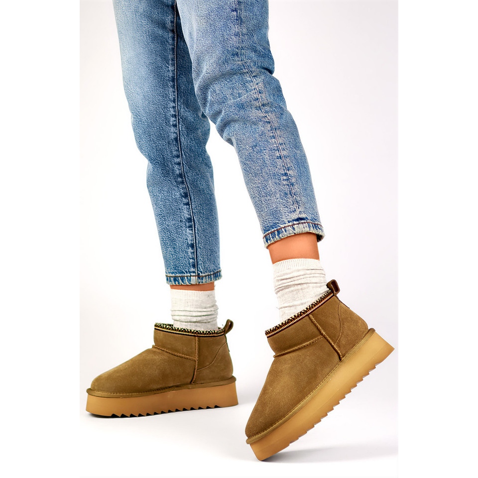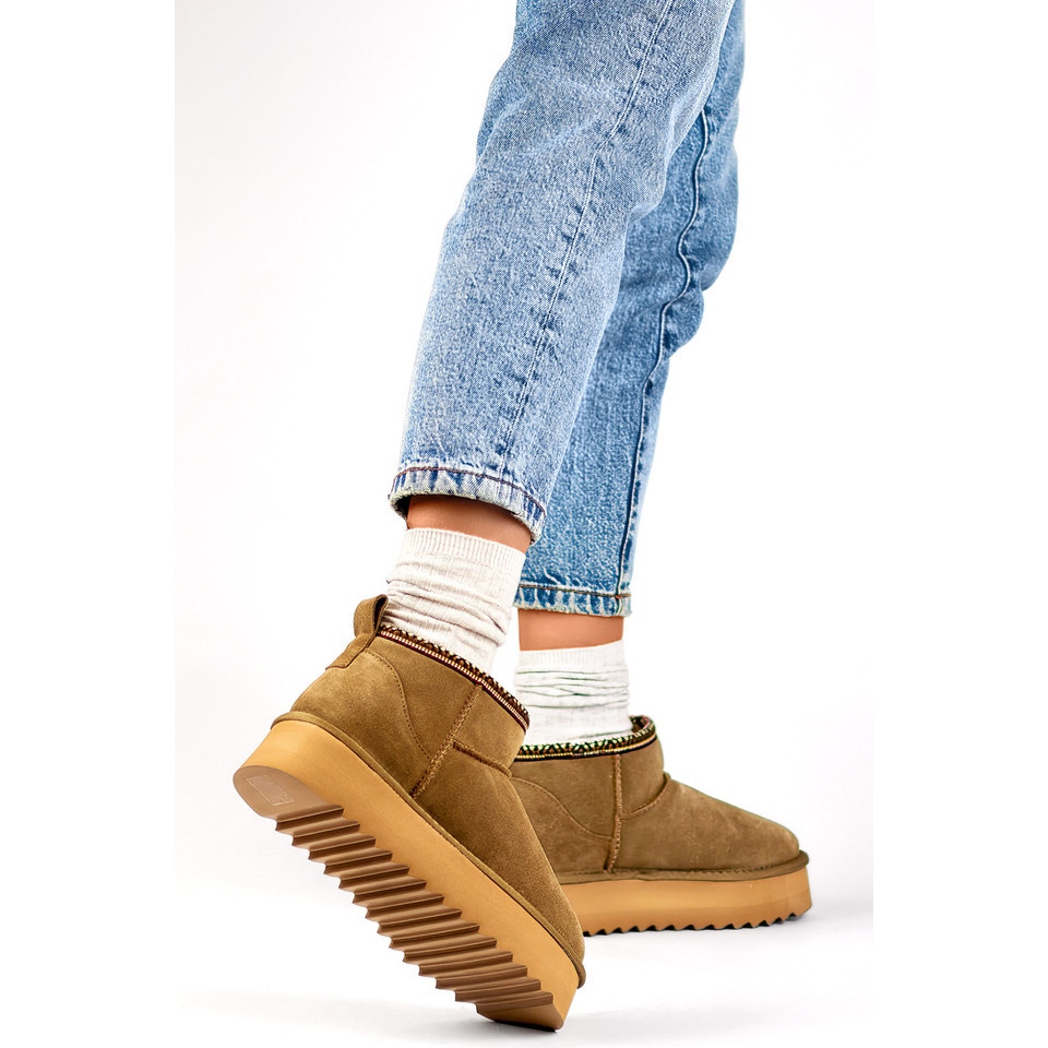 Découvrez une combinaison parfaite de style et de confort avec des bottes de neige en cuir marron comme des bottes. Ces chaussures uniques, en cuir en daim naturel, sont le choix parfait pour les jours d'hiver frais. La hauteur de la tige de 10 cm offre un soutien adéquat et l'isolation avec une fourrure écologique protège contre le froid, tout en garantissant un confort thermique.
