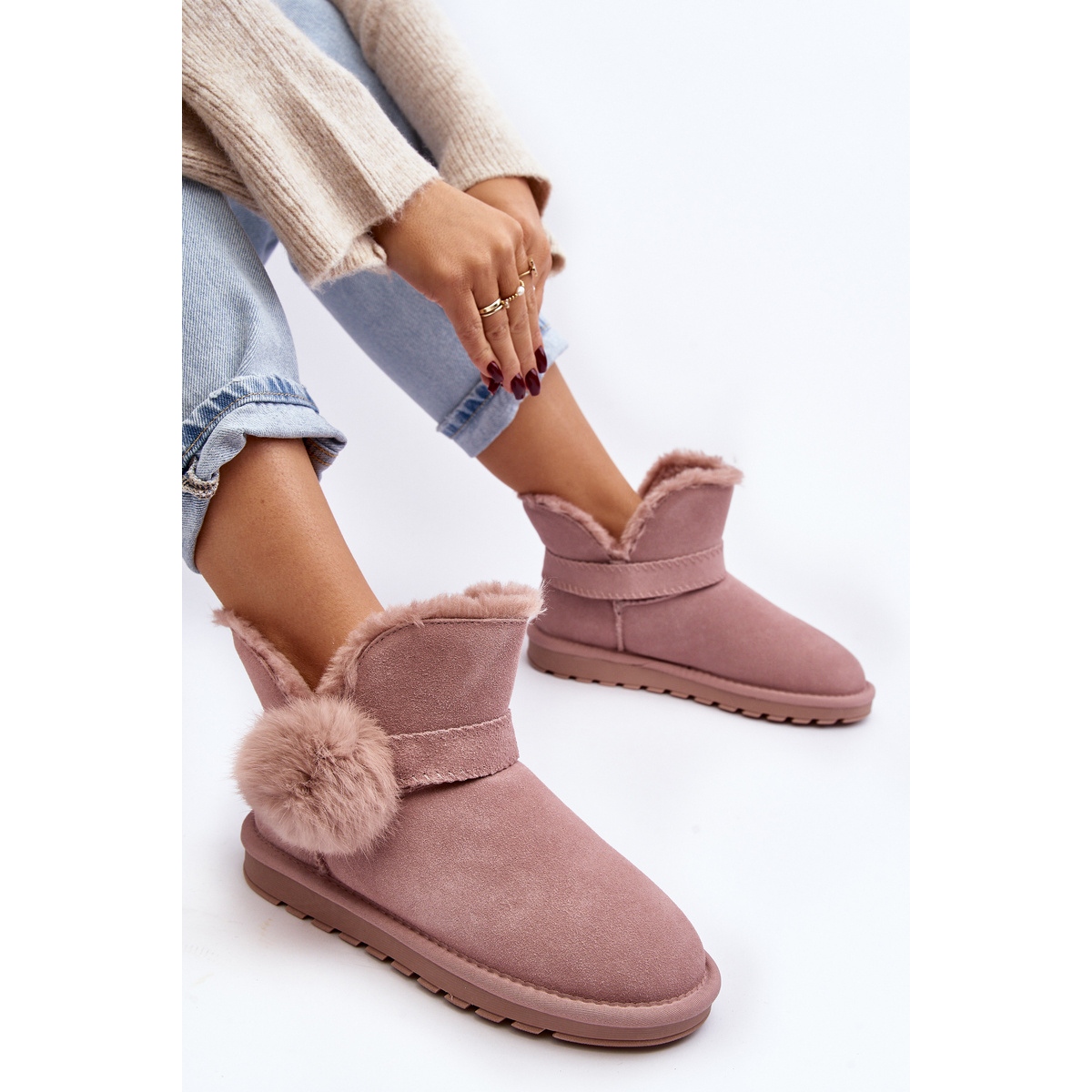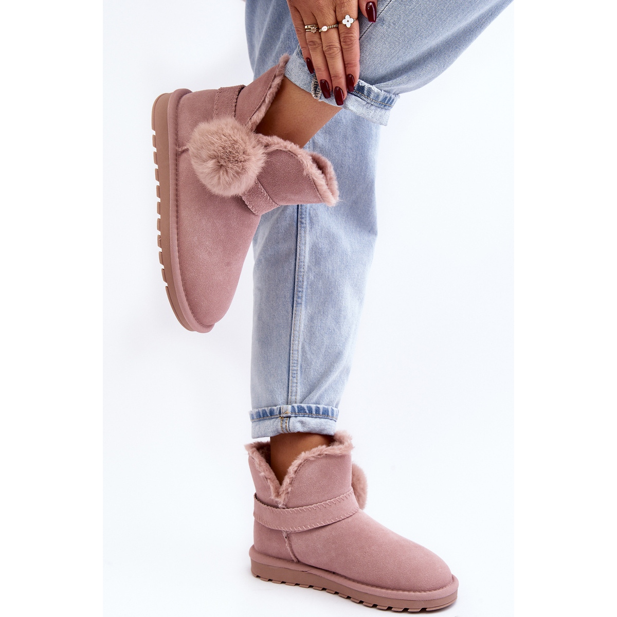 Détails: Bottes de neige en daim avec découpes pour femmes, rose Eraclio