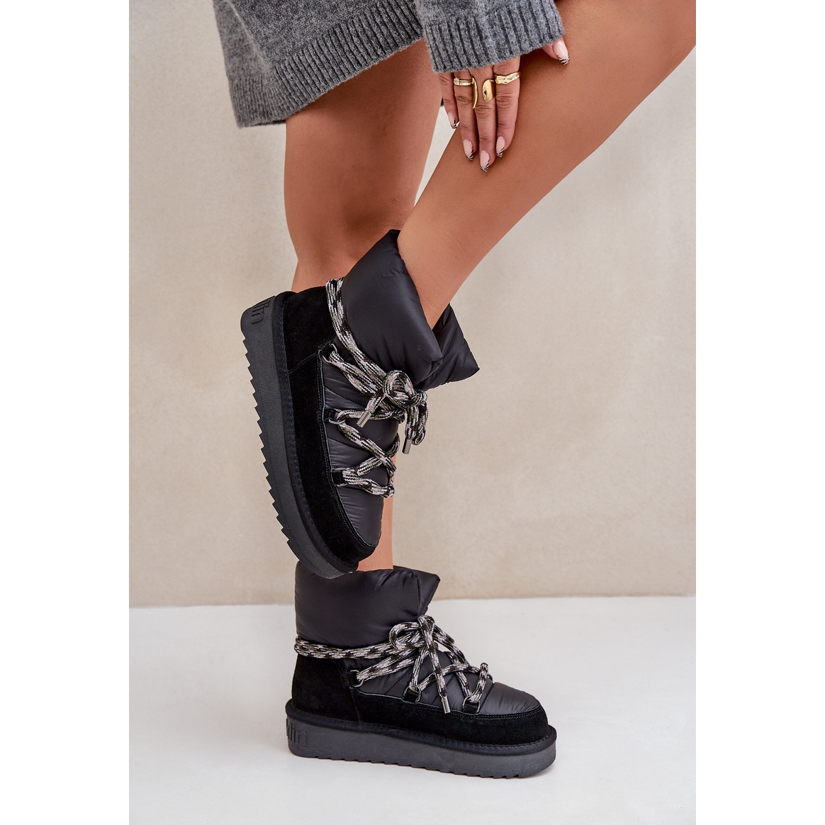 Détails: Bottes de neige en daim pour femmes avec laçage épais D.Franklin DFSH375003 Noir le noir