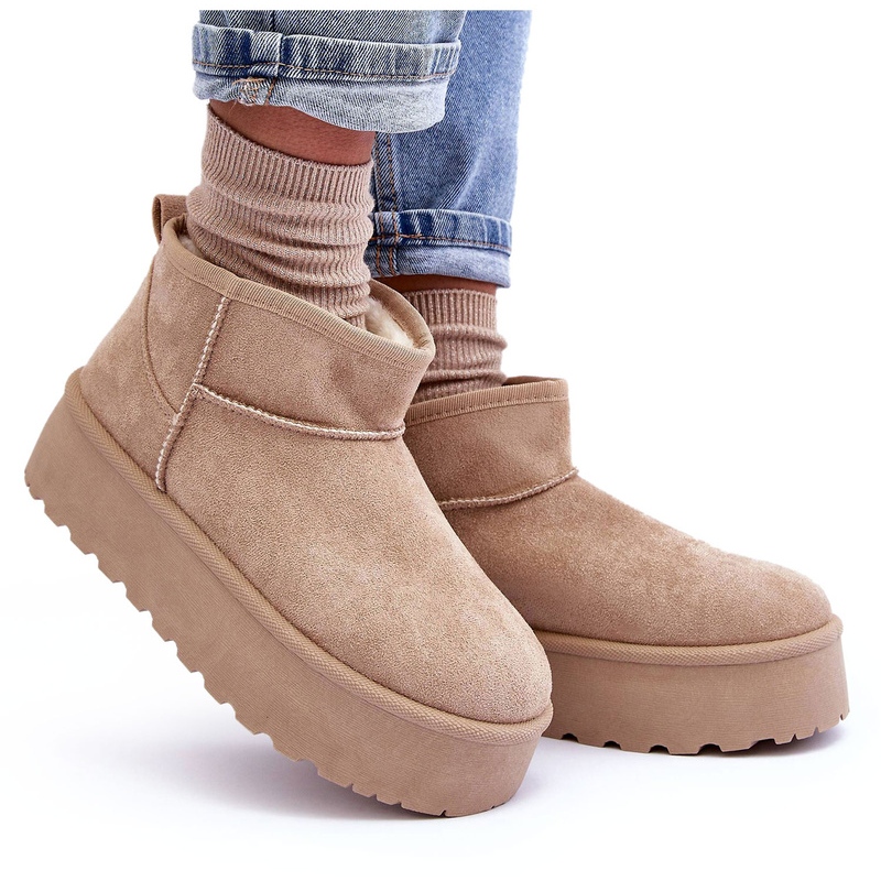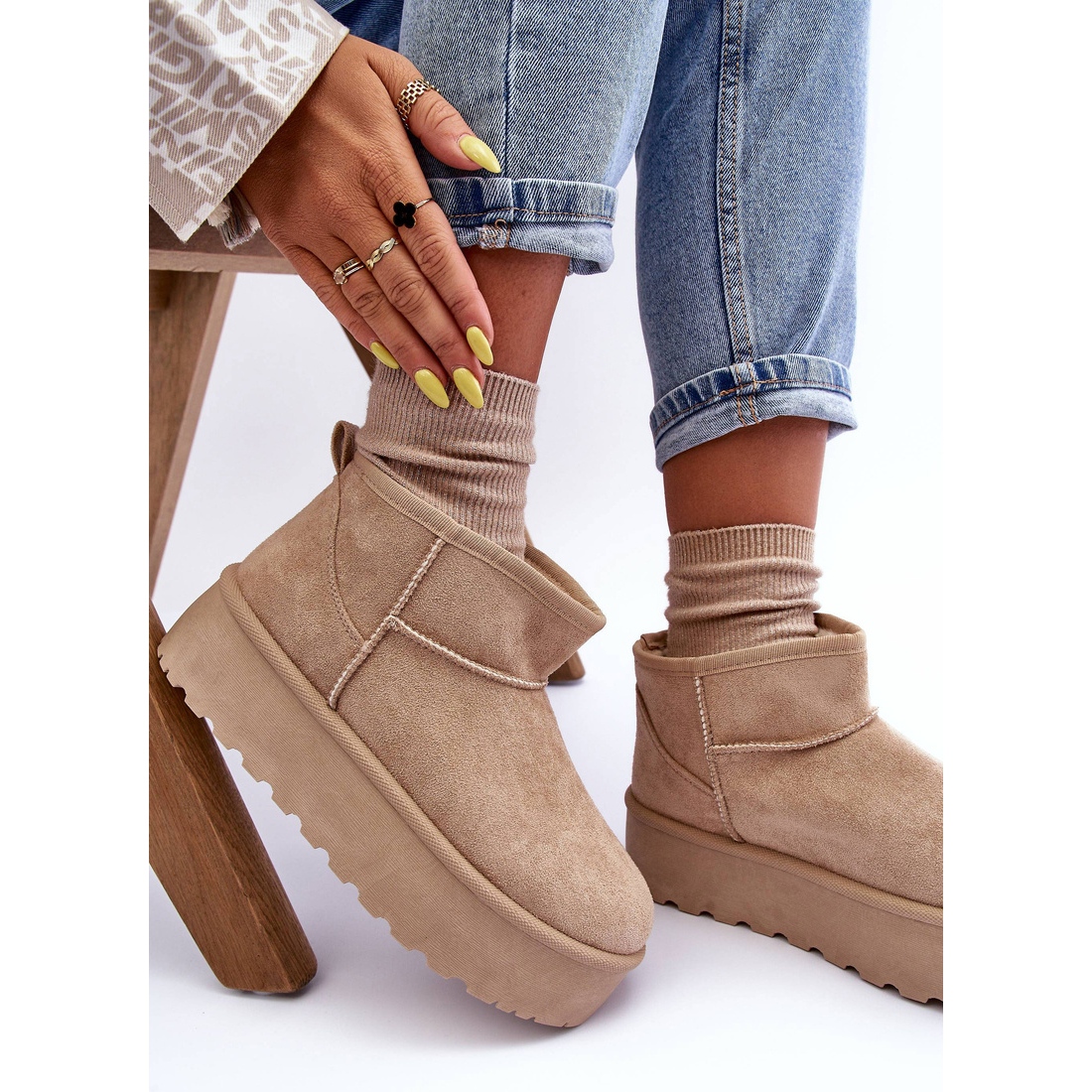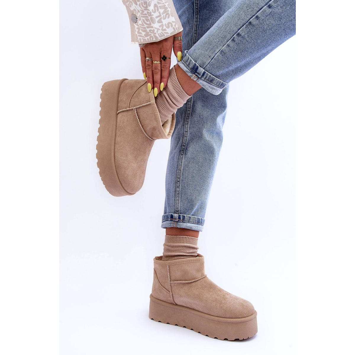 Les bottes de neige pour femmes de FD1 sont des chaussures beiges à plateforme en daim écologique. Ce sont des bottes basses avec une isolation épaisse en fourrure écologique à l'intérieur, ce qui les rend parfaites pour les journées froides. Ce design classique s'adapte parfaitement à différents styles.