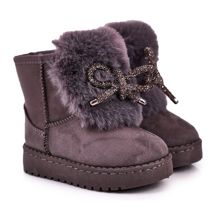 Détails: Bottes De Neige Enfant Fourrure Daim Gris Amelia