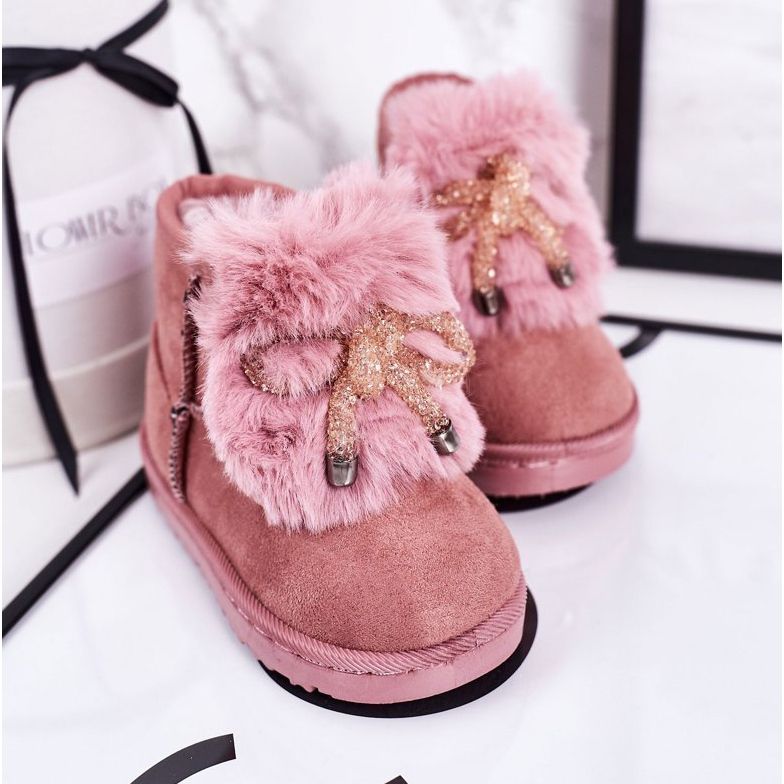 Détails: Bottes de Neige Enfant Fourrure Daim Rose Amelia
