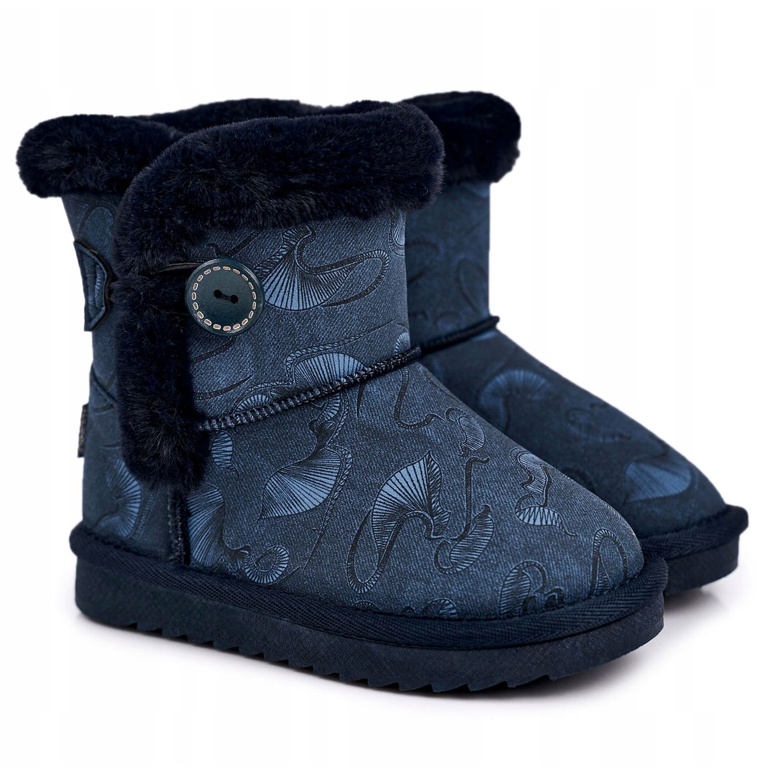 Apawwa Apawwa Bottes De Neige Enfant Fourrure Et Bouton Bleu Marine Kawai