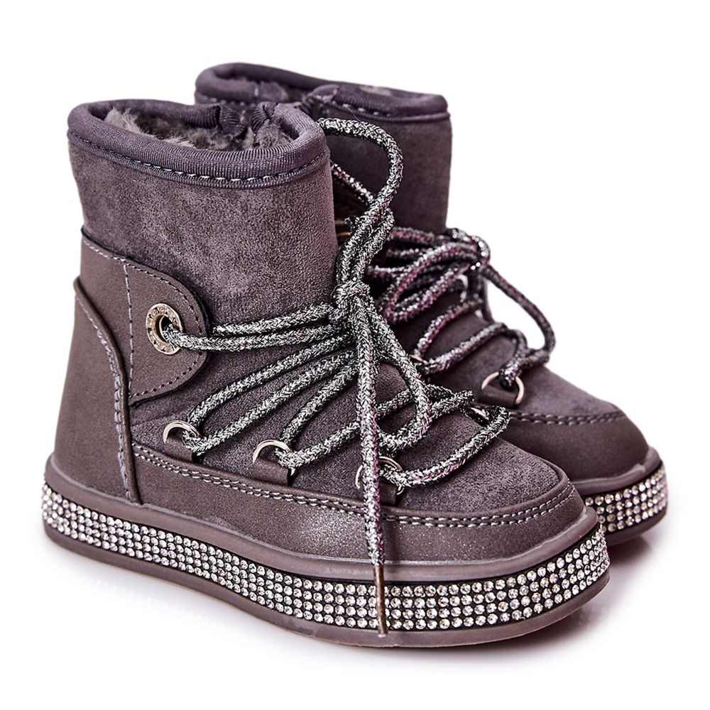 Détails: FR1 Bottes De Neige Enfant Grises Avec Cubic Zirconia Wellma