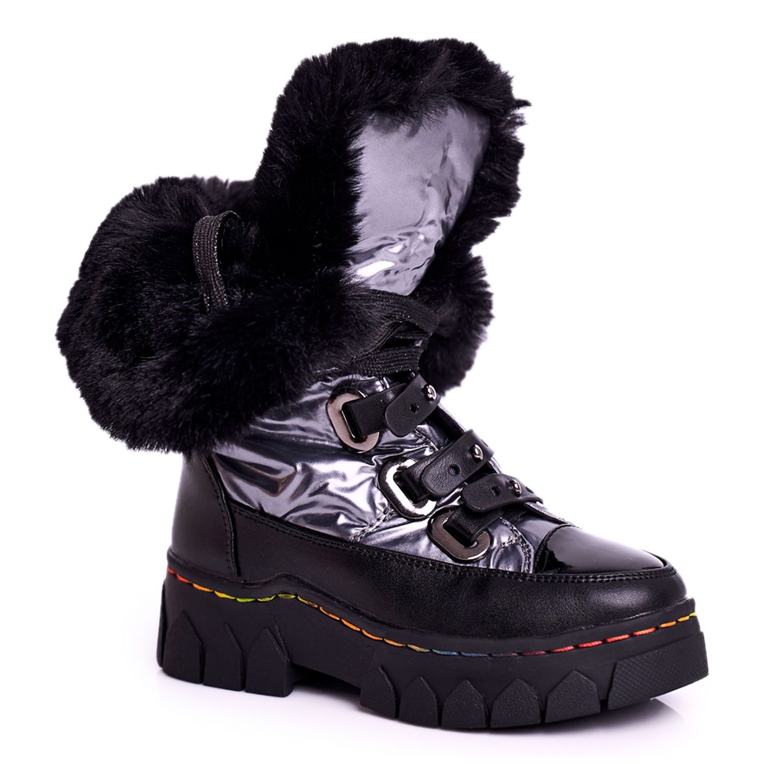 Apawwa Apawwa Bottes de Neige Enfant Isolées Avec Fourrure Noir et Gris Turismo le noir