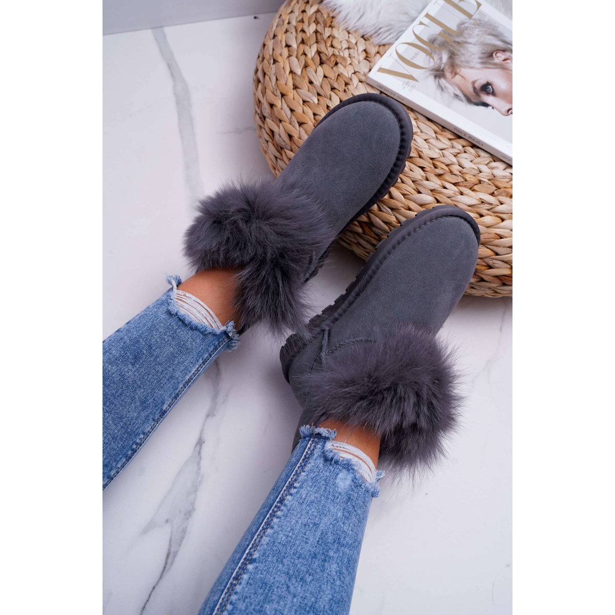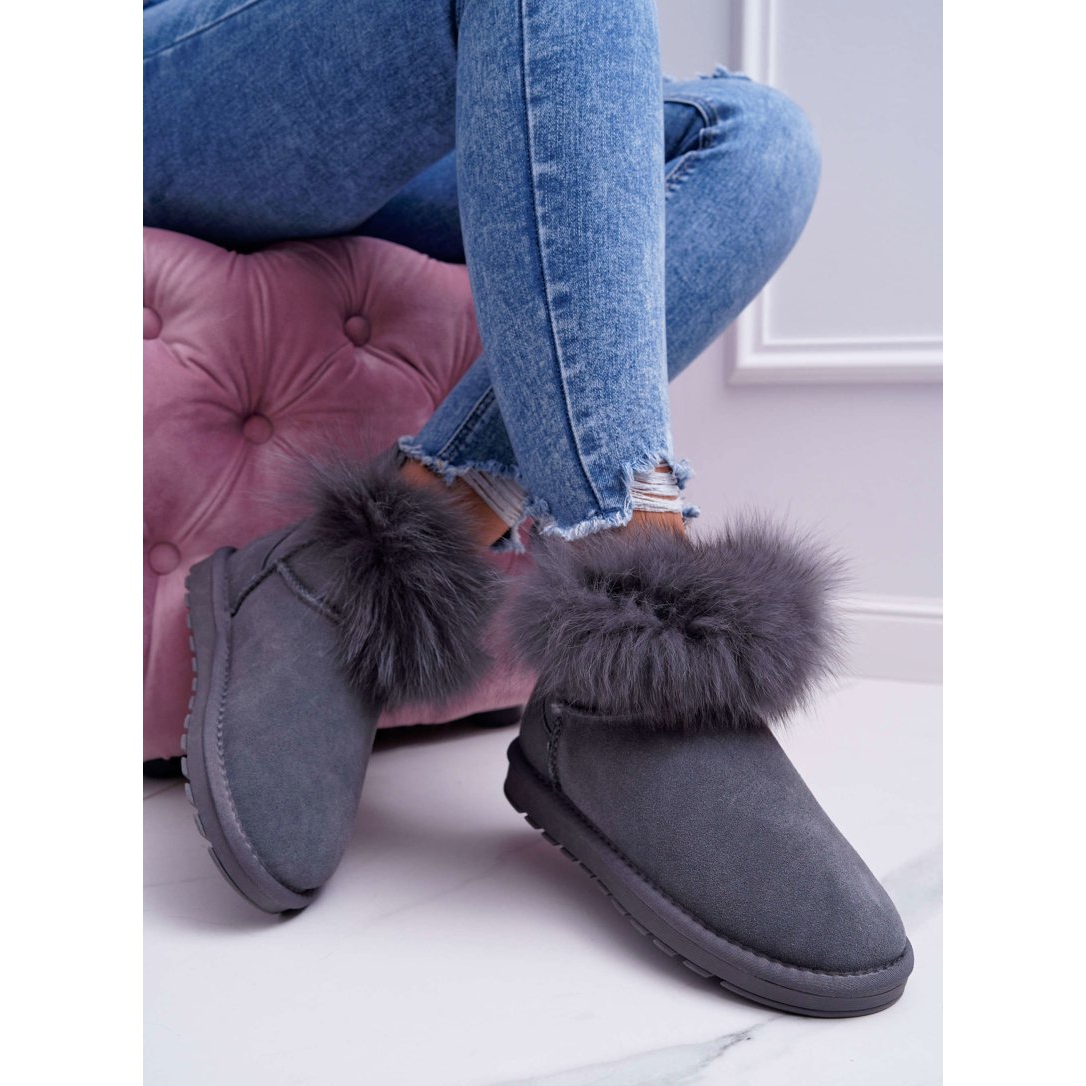 HAN HAN Bottes De Neige Femme Avec Fourrure Avec Fourrure Daim Gris Memento
