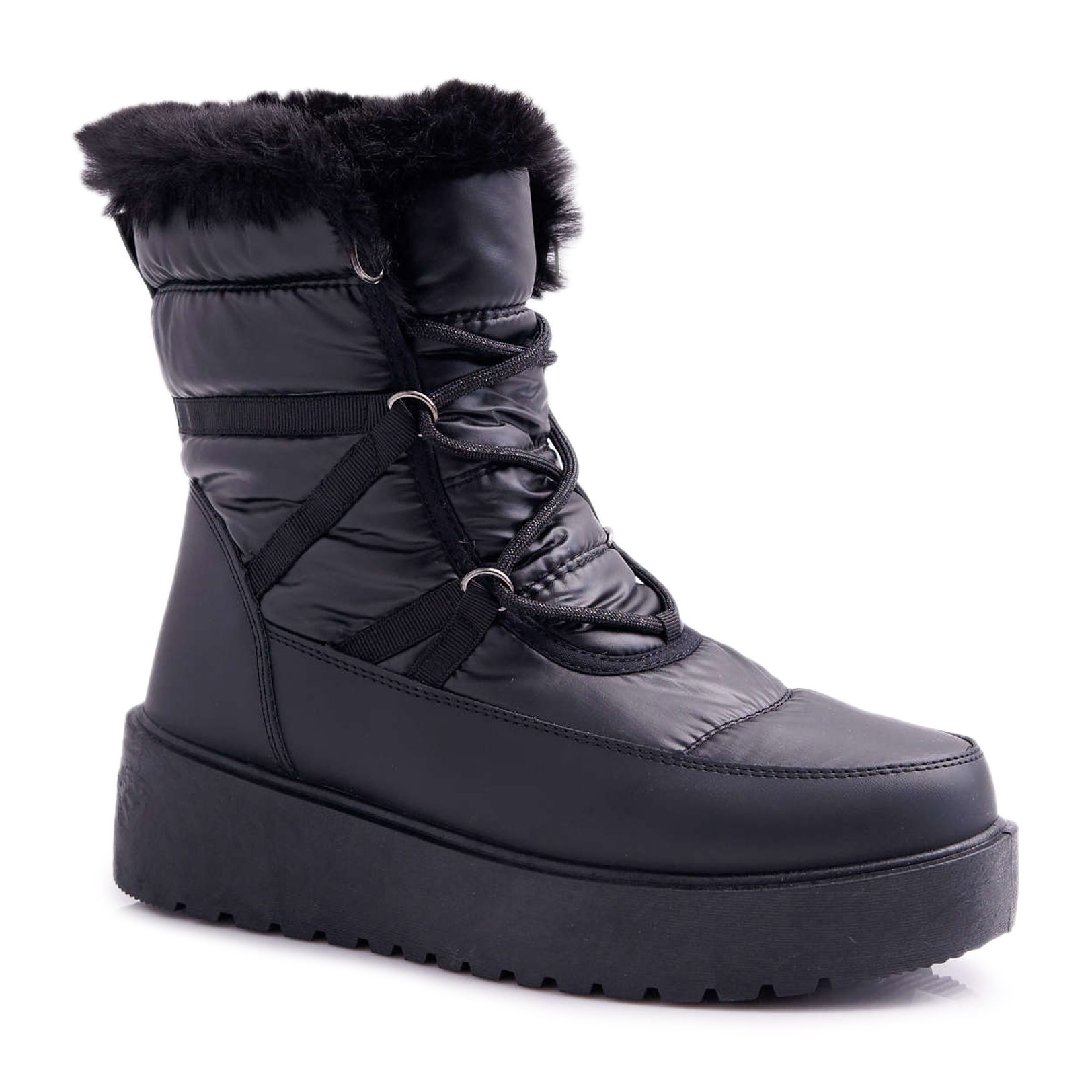 L'intérieur est isolé avec une fourrure douce et assure un confort thermique, ce qui signifie que vos pieds resteront au chaud même par temps les plus froids. La tige haute (17 cm) vous isole parfaitement du froid, et la semelle synthétique (5 cm) garantit une bonne adhérence sur diverses surfaces. La fermeture à lacets permet un ajustement précis des chaussures au pied, ce qui augmente le confort de port.