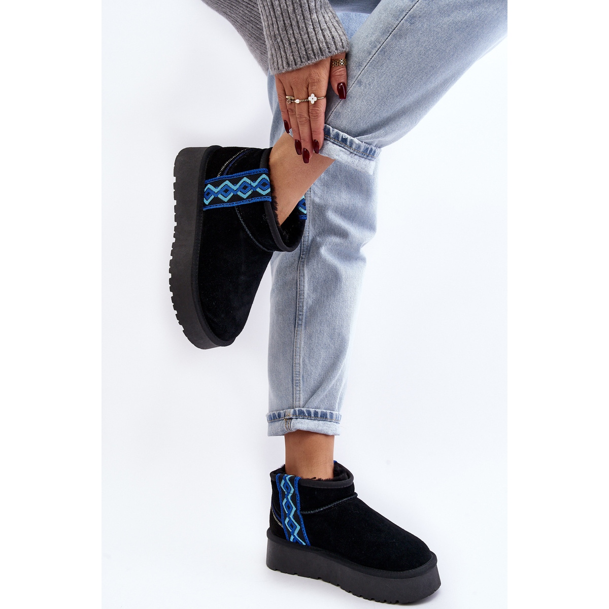Les bottes de neige en daim pour femmes à semelle épaisse, noires, sont à la mode et confortables. Fabriqués en cuir suédé naturel, ils sont exceptionnellement doux et faciles à enfiler. Ils ont un motif aztèque sur le côté qui ajoute du style. La semelle est épaisse, en caoutchouc et antidérapante, ce qui offre une excellente isolation des surfaces froides. La semelle intérieure de la chaussure est isolée et recouverte de fourrure, ce qui offre un confort et une chaleur supplémentaires. L'arrière de la chaussure est rigidifié.