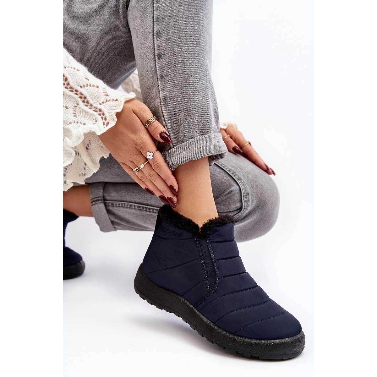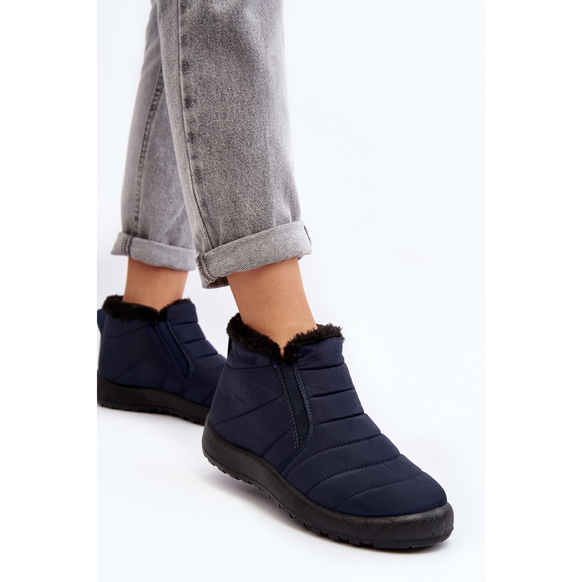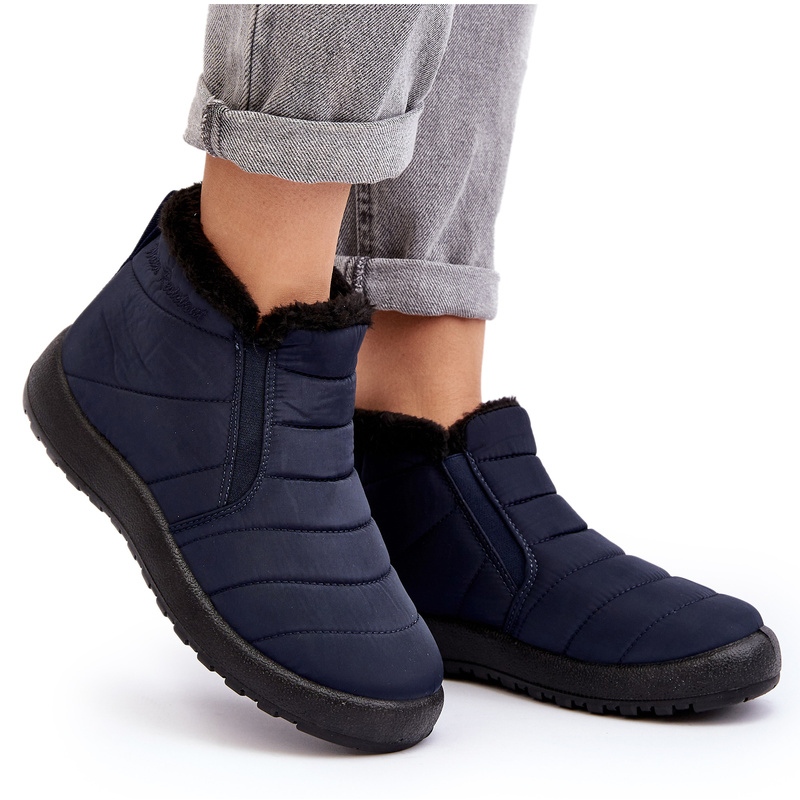 Des bottes de neige classiques et fonctionnelles dans une teinte bleu marine (marine), conçue pour une utilisation confortable les jours plus frais. Le haut fait de tissu durable résistant à la pluie, au gel et au vent ainsi que chaud, agréable à la fourrure tactile à l'intérieur assurent le confort thermique même à basse température. Modèle glissé, réglé sur une semelle en caoutchouc solide avec la plate-forme - stable et confortable pendant les promenades quotidiennes.