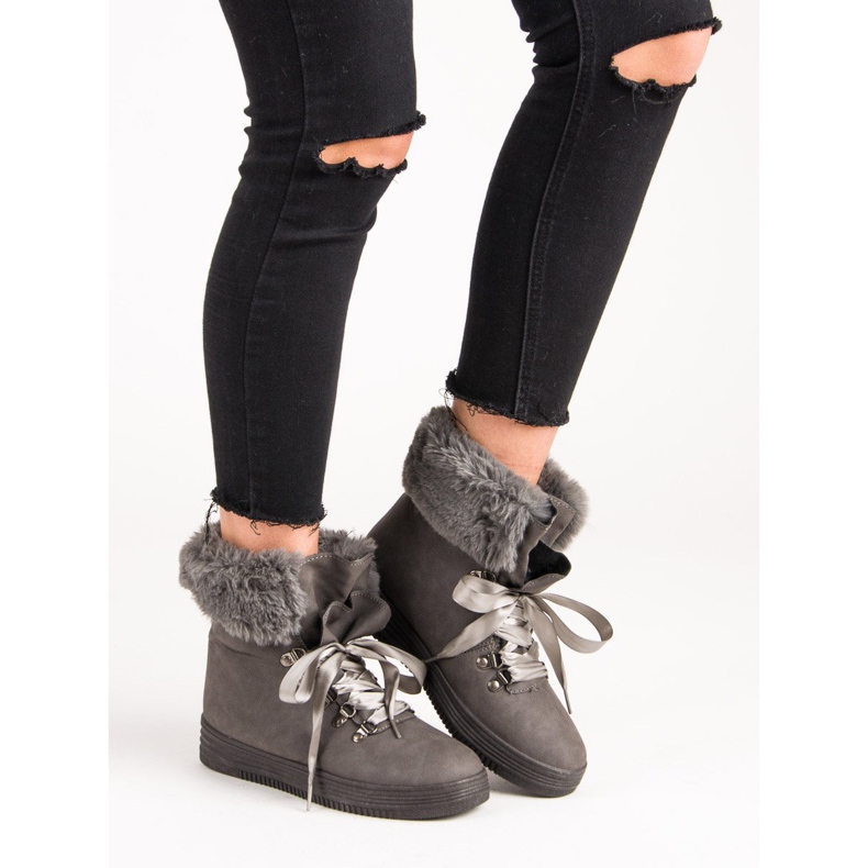 Les bottes de neige grises avec fourrure sont la proposition parfaite pour les journées d'hiver, alliant style unique et confort maximum. Fabriquées en cuir écologique de haute qualité dans une nuance de gris tendance, ces chaussures protègent non seulement efficacement du froid, mais ajoutent également du caractère à tout style hivernal.