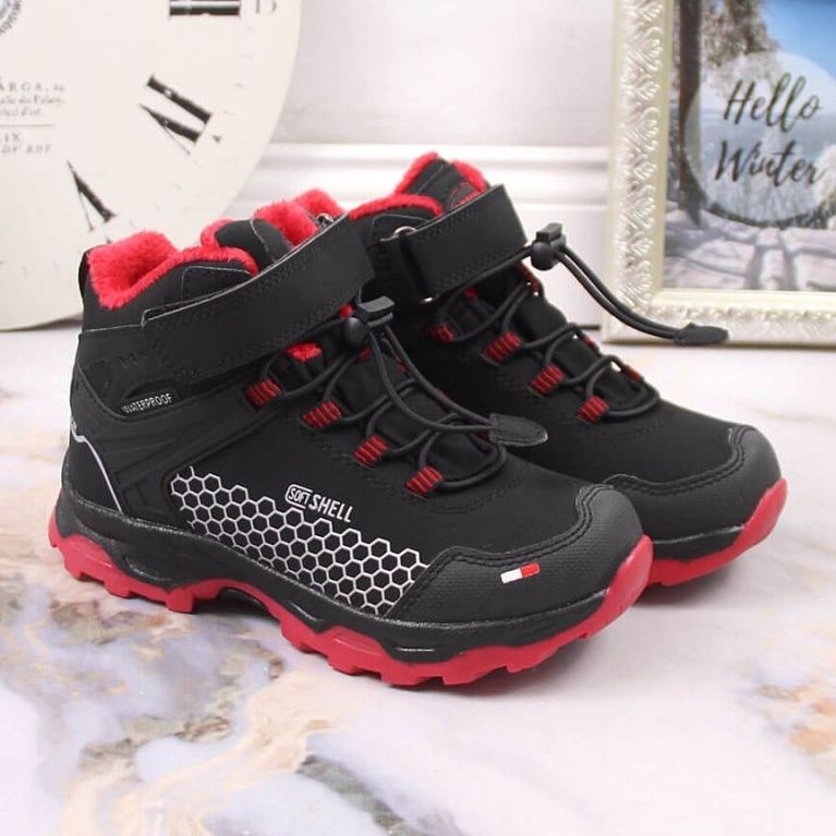 Des bottes de neige étanches pour le fermeture scratch American Club JR AM904B - Chaussures d'hiver parfaites pour les garçons, combinant la fonctionnalité et l'apparence universelle. La coupe élevée offre une meilleure protection contre la neige et le froid, et la couleur noire et modérée correspond à de nombreuses stylifications d'hiver.
