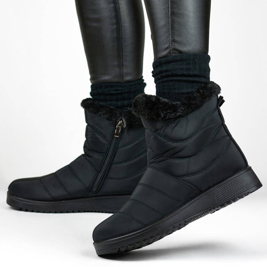 Détails: Bottes de neige isolées avec fourrure pour femme, noires W76B