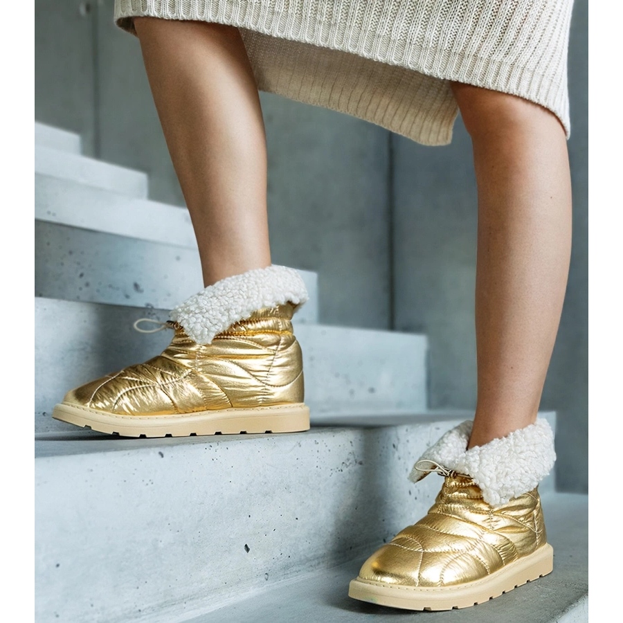 Détails: Bottes de neige isolées dorées Caellita avec revers d'or