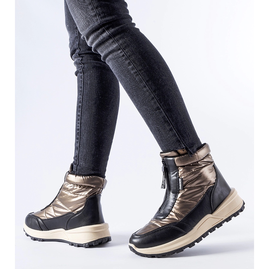 Des bottes de neige élégantes et chaudes pour une femme moderne qui combinent un look à la mode avec des solutions pratiques pour l'hiver. La hauteur élevée atteignant la cheville protège efficacement contre le froid et la neige, et la fermeture éclair sur le côté rend beaucoup plus facile à mettre et à retirer.
