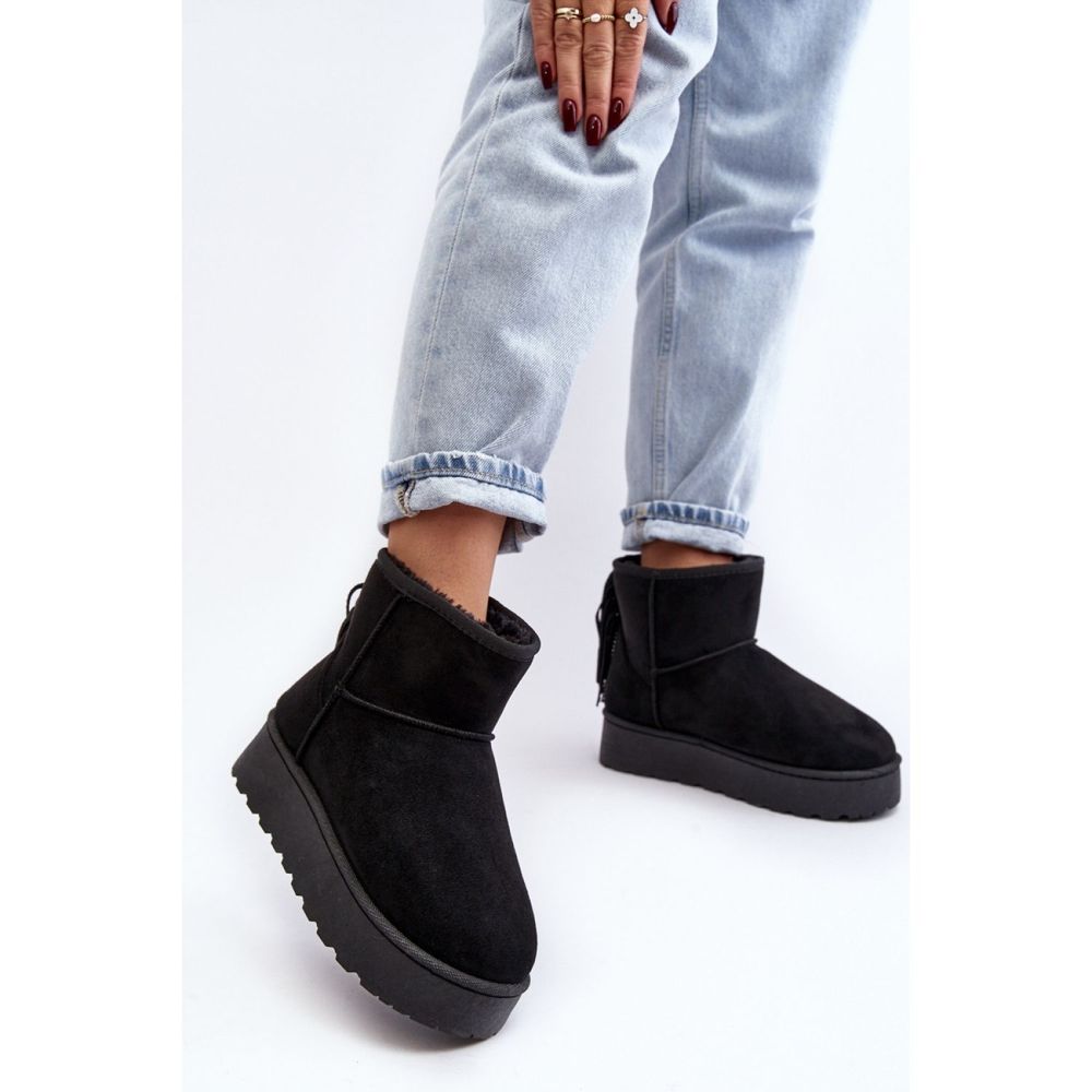 La hauteur de la cheville, décorée de franges à la mode, leur donne un caractère unique. Grâce à une plate-forme solide de 4 cm de haut, les naviguer n'est pas seulement confortable, mais aussi stable. L'intérieur des chaussures est isolé avec une fourrure épaisse, ce qui assure la chaleur même les jours les plus froids.