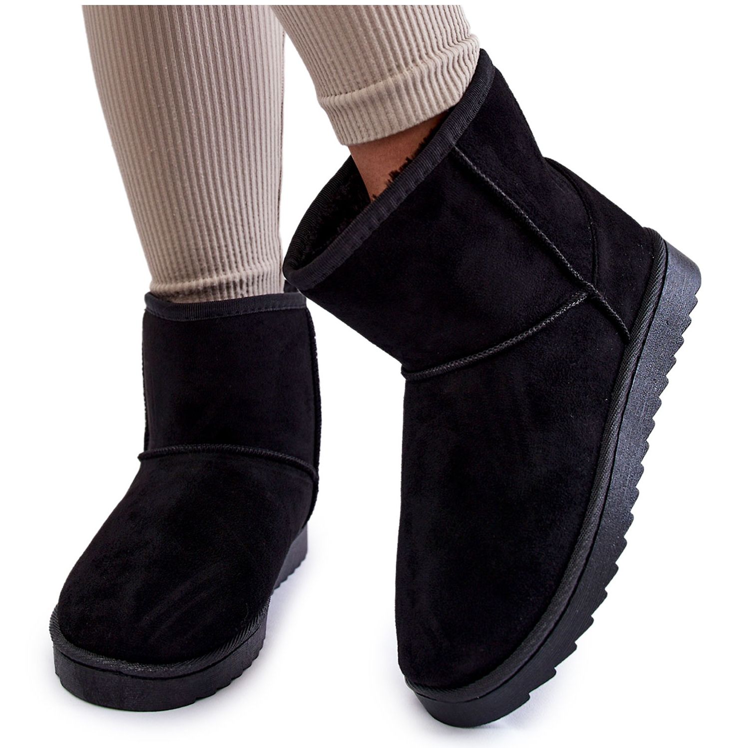 Bottes de neige noire isolées pour femmes - une combinaison de style, de confort et de chaleur les jours froids. Fabriqué en daim eco avec des coutures subtiles sur la tige, ils présentent une coupe universelle classique, que vous pouvez facilement adapter aux stylisations d'hiver - d'une veste à la baisse à un long manteau. L'intérieur rembourré avec une fourrure écologique épaisse offre un réchauffement agréable, et la plate-forme de 3 cm de haut isole efficacement le sol froid, augmentant le confort pendant les promenades.