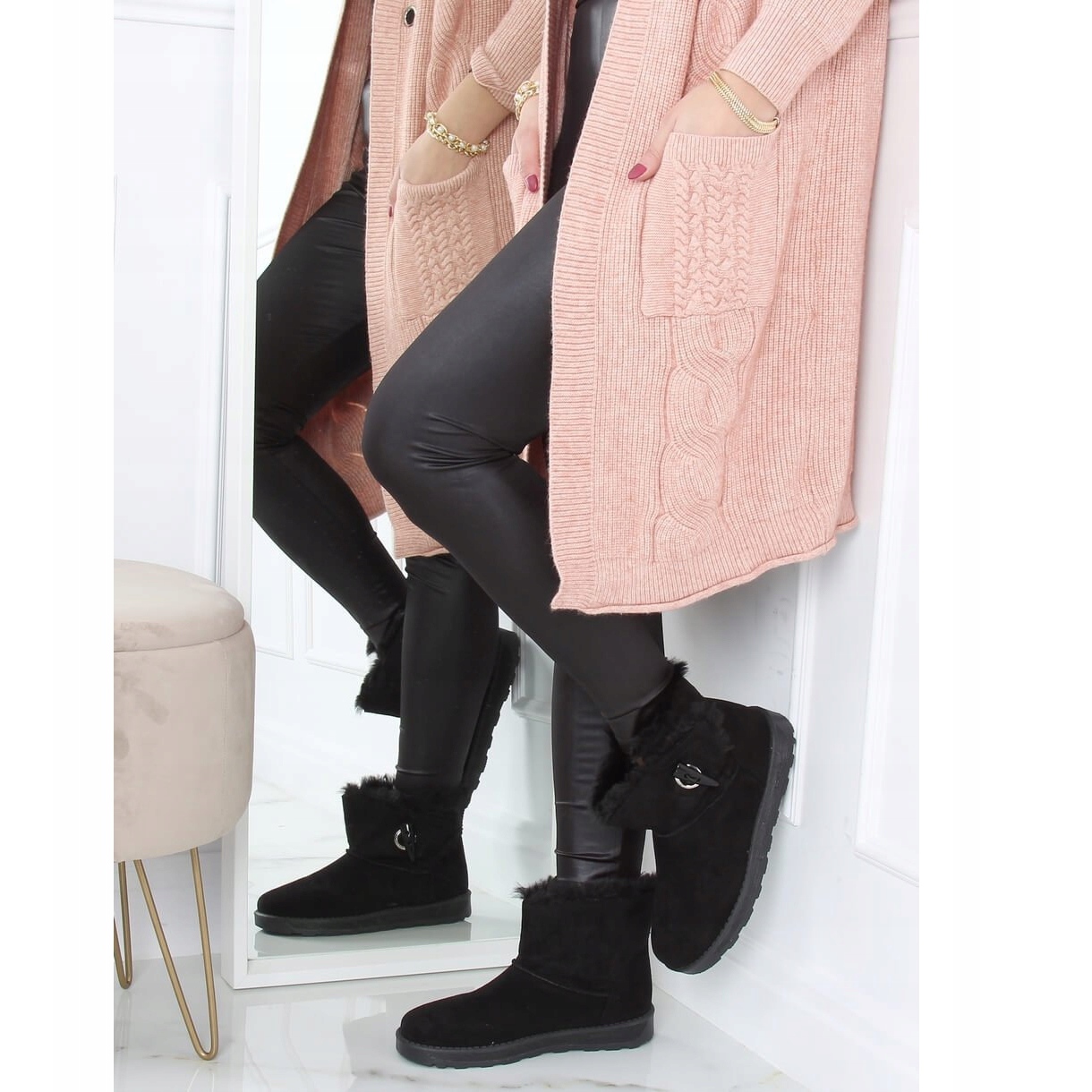 La tige des chaussures est décorée d'une fourrure douce et élégante, qui ajoute non seulement du style, mais fournit également une isolation supplémentaire. La semelle haute garantit une excellente isolation du sol, ce qui signifie que même les jours les plus froids n'auront pas peur de vous. Grâce à une traction adéquate, ces bottes de neige assurent la stabilité lors de la marche dans les rues enneigées.