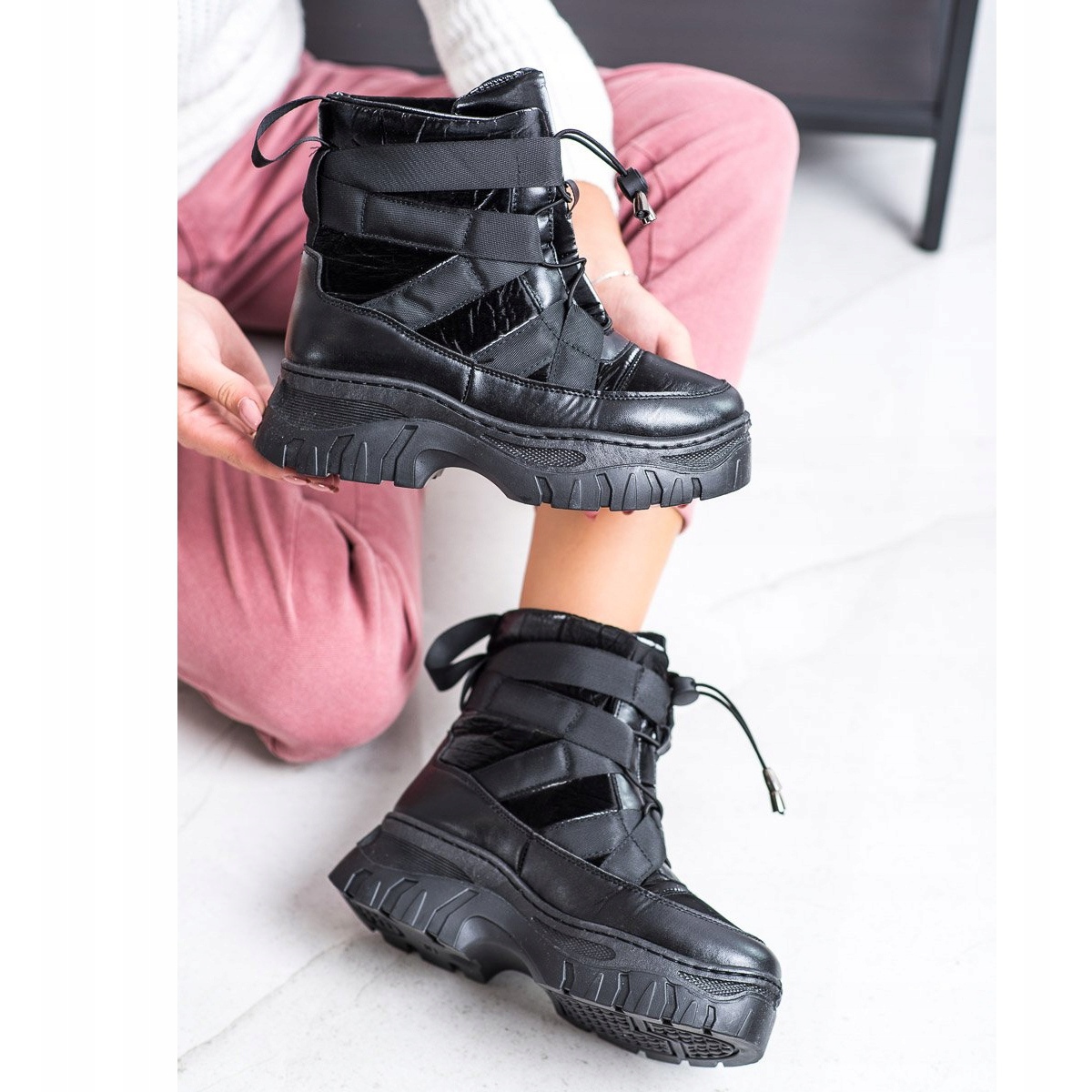 Grâce à l'isolation, ces bottes de neige sont une solution parfaite pour les journées froides, et le contrefort souple et la fermeture à lacets garantissent confort et maintien du pied. Les bottes de neige noires avec isolation SHELOVET ne sont pas seulement des chaussures fonctionnelles, mais aussi un accessoire à la mode qui vous aidera à vous démarquer de la foule. Choisissez-les pour un usage quotidien et profitez du style et du confort qu'ils offrent !