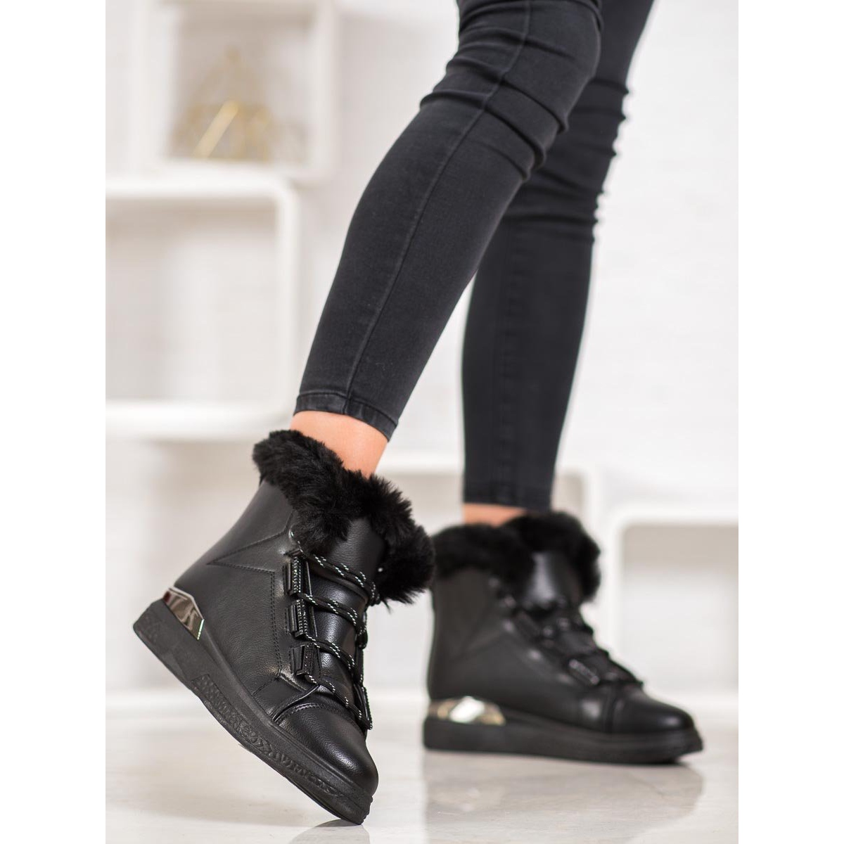 Leur tige haute, de 12 à 13 cm de haut, est en cuir écologique, ce qui donne aux chaussures un look élégant et est en même temps respectueux de l'environnement. Le contrefort de talon souple offre confort et soutien lors des activités quotidiennes, ce qui en fait une solution parfaite au quotidien.