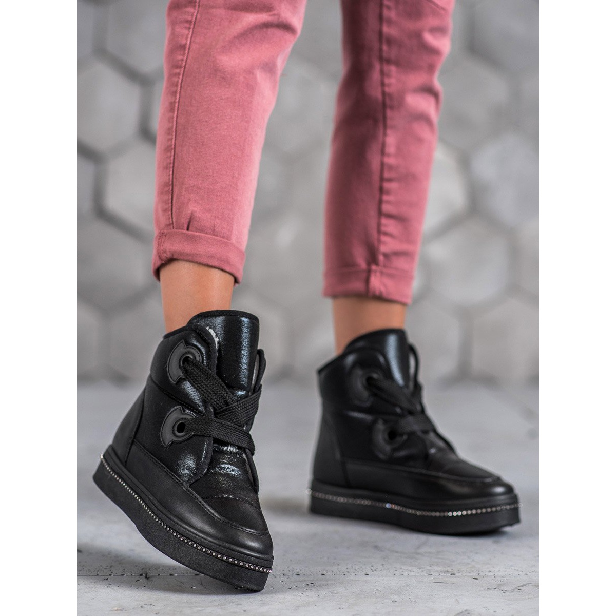 Les bottes de neige ont un design attrayant, orné de strass sur la semelle, ce qui leur confère un caractère unique. Que vous partiez pour une promenade en ville ou pour un marathon de shopping hivernal, ces chaussures complèteront parfaitement n'importe quel style de tous les jours.
