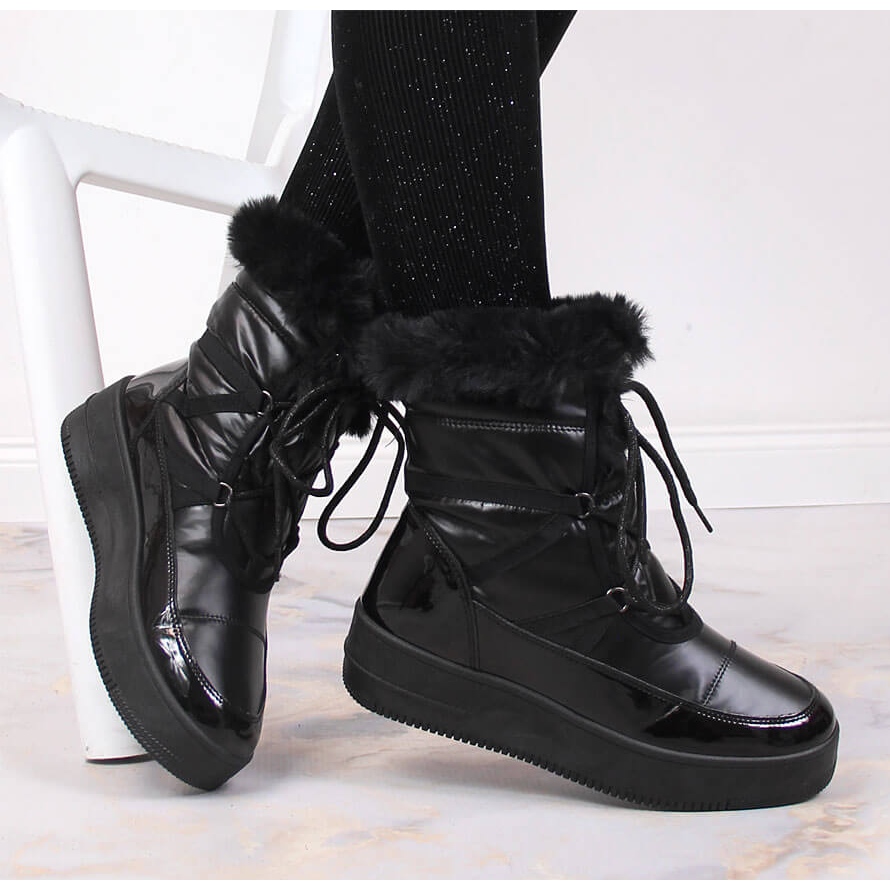 Bottes de neige plateforme femme avec fourrure noir NEWS