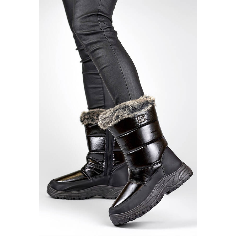 Détails: Bottes de neige pour femmes avec fourrure et fermeture éclair, noires N1612B