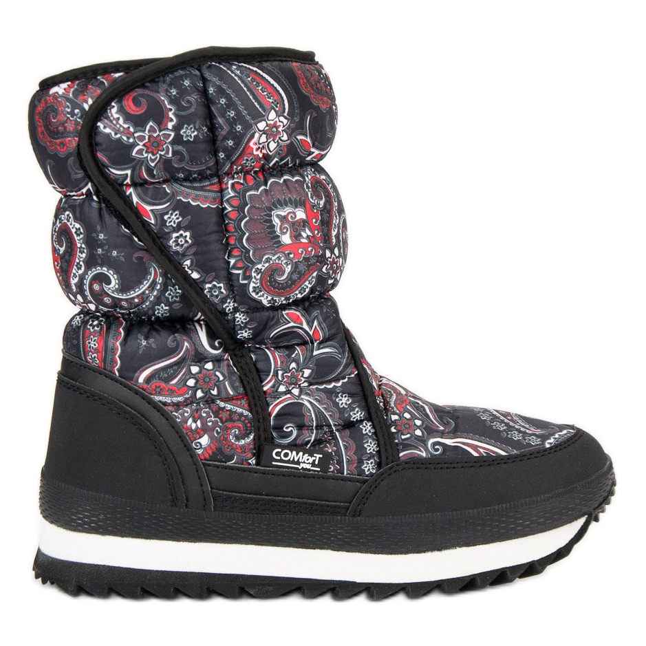 Fabriquées en matière textile de haute qualité, les bottes de neige se distinguent par un motif original qui combine les couleurs classiques - noir, blanc et rouge - dans un joli motif floral et géométrique. Grâce à la semelle surélevée pouvant atteindre 3 cm de hauteur et à l'isolation en fourrure douce, vos pieds seront parfaitement protégés du froid et de l'humidité, ce qui est particulièrement important lors des longues promenades hivernales.