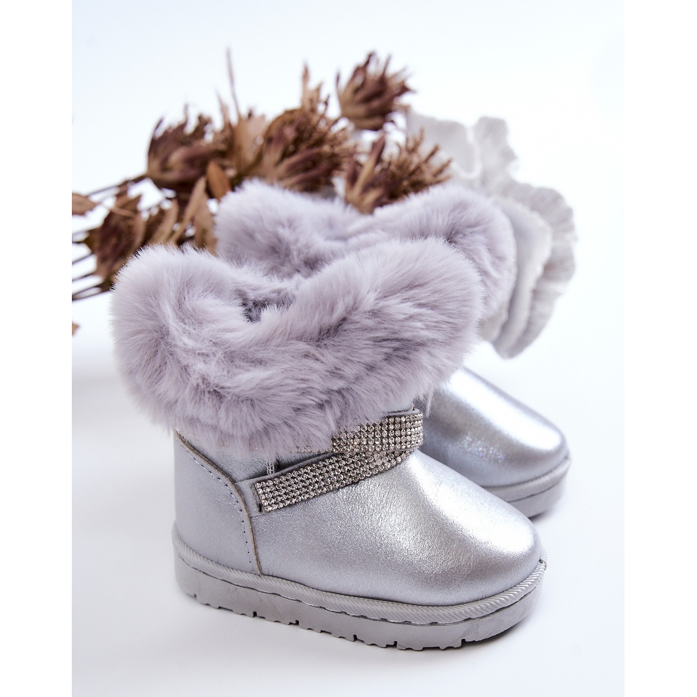 Bottes de neige pour enfants avec zircons Hollee - Gris avec des accessoires en argent