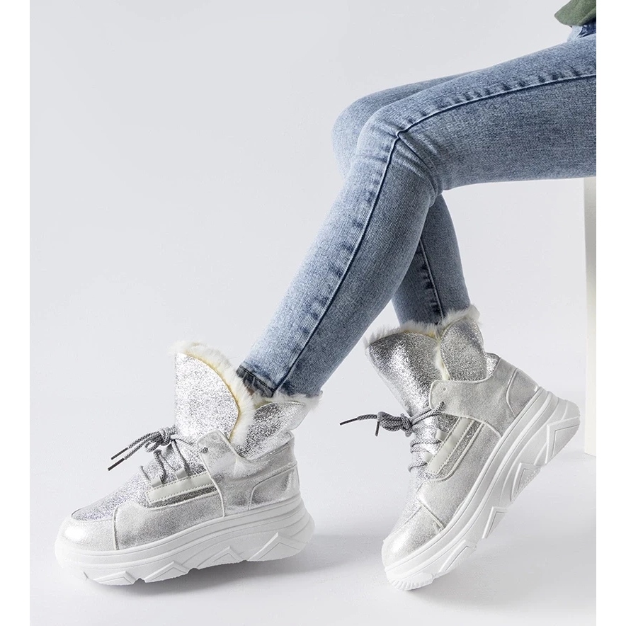 Détails: D/CEO Bottes de neige Stringer isolées blanches et argentées