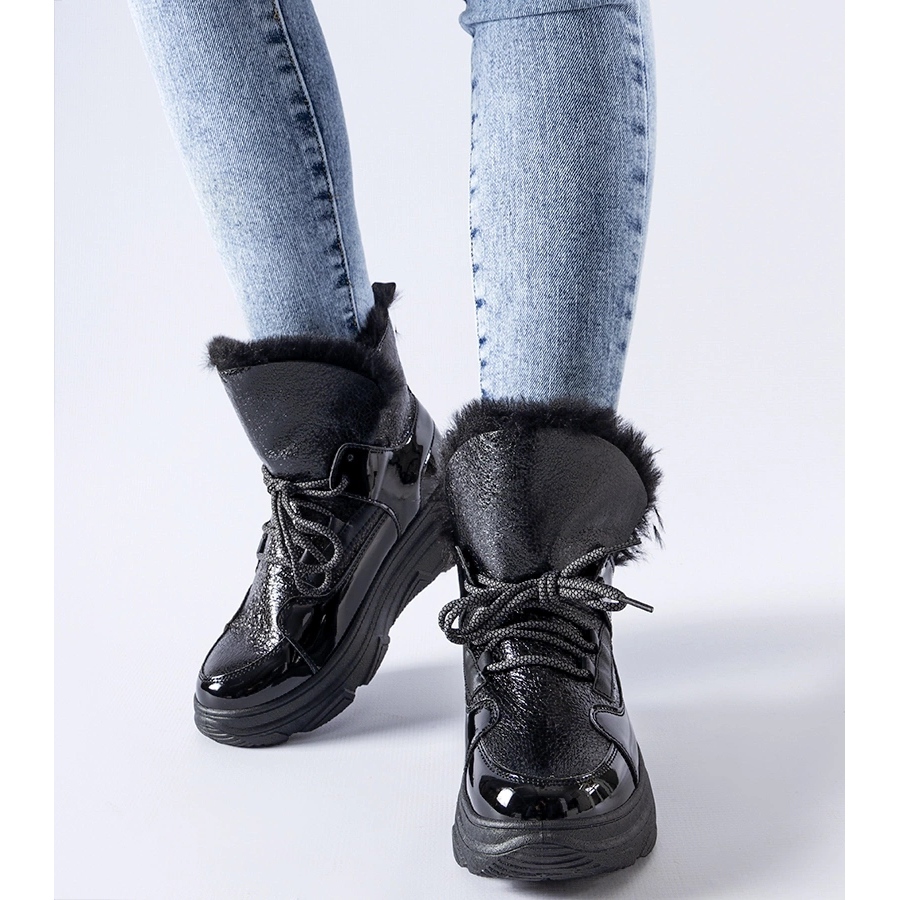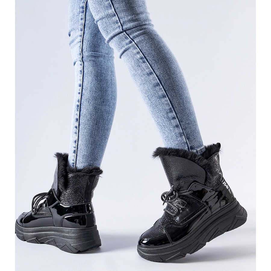 Inna marka Bottes de neige Stringer isolées et vernies noires le noir