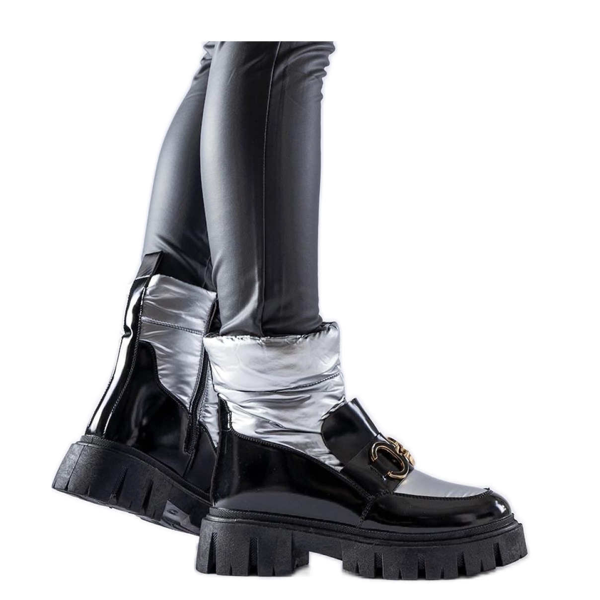 Les bottes de neige vernie en noir et argent sont la solution parfaite pour chaque femme qui veut combiner le style avec la fonctionnalité dans les conditions hivernales. Ces chaussures de cheville élégantes sont caractérisées par un design unique, combinant une couleur noire à la mode avec des accents d'argent subtils.