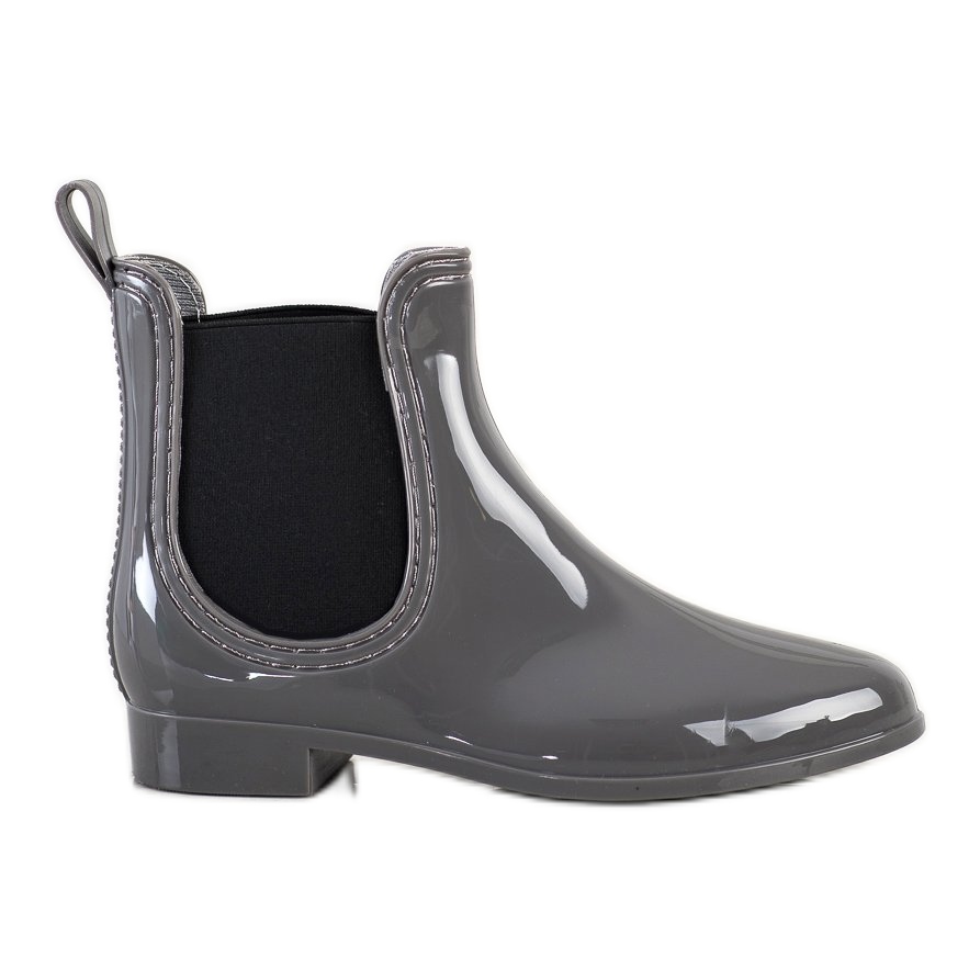Élégant, pratique et 100% imperméable - Galoshes courts dans une couleur gris brillante parfaite pour les jours pluvieux et nuageux. La structure glissée avec des coins noirs flexibles sur les côtés assure une insertion rapide et un ajustement confortable. Le nez classique et arrondi et la semelle en caoutchouc rechouée avec un talon bas forment un modèle universel pour les stylisations de tous les jours.