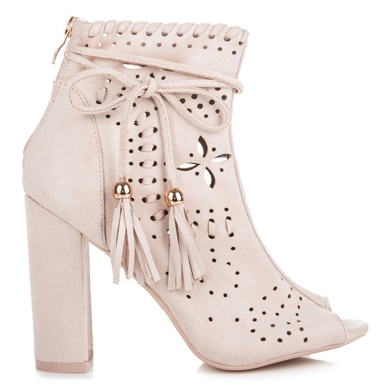 Le motif ajouré et les franges stylées leur confèrent légèreté et fraîcheur, qui s'intègrent parfaitement dans les tendances du printemps et de l'été. Grâce à l'absence de bout, les bottes sont subtiles et leur palette de couleurs intemporelles - marron et beige - les rend faciles à combiner avec différents styles.