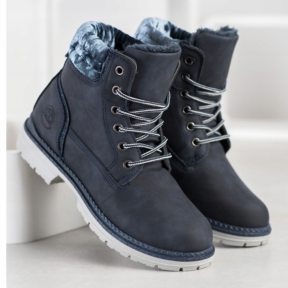 Détails: SHELOVET Bottes de randonnée à tige en velours bleu marine argent