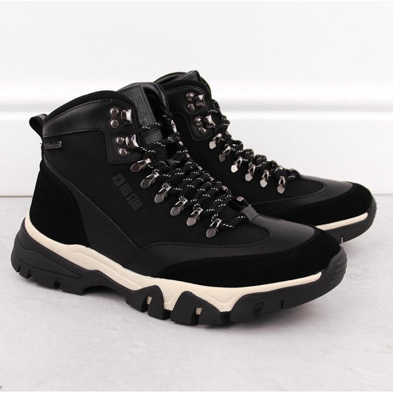 Détails: Bottes de randonnée en cuir masculin Big Star OO174182 Black le noir