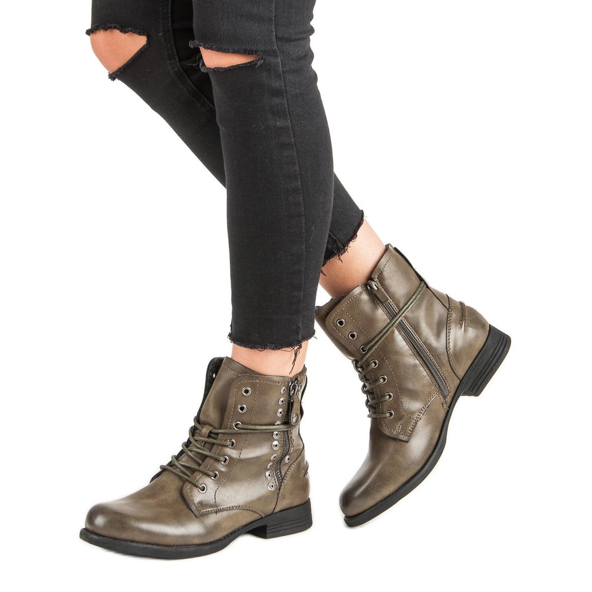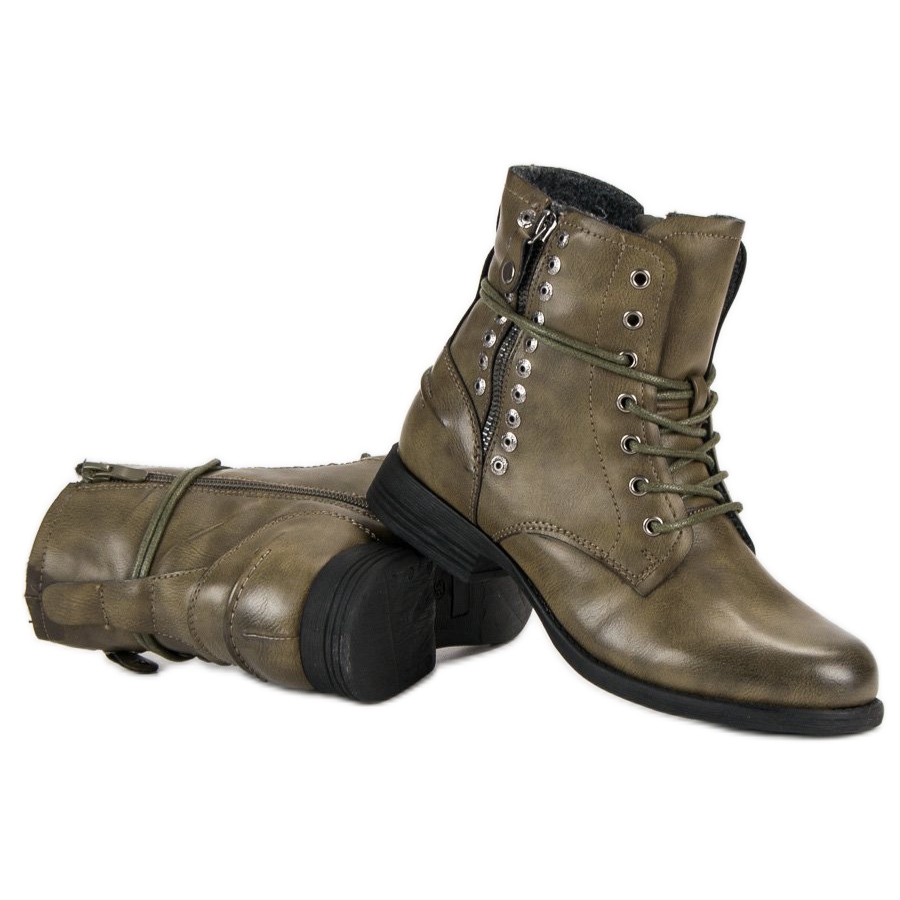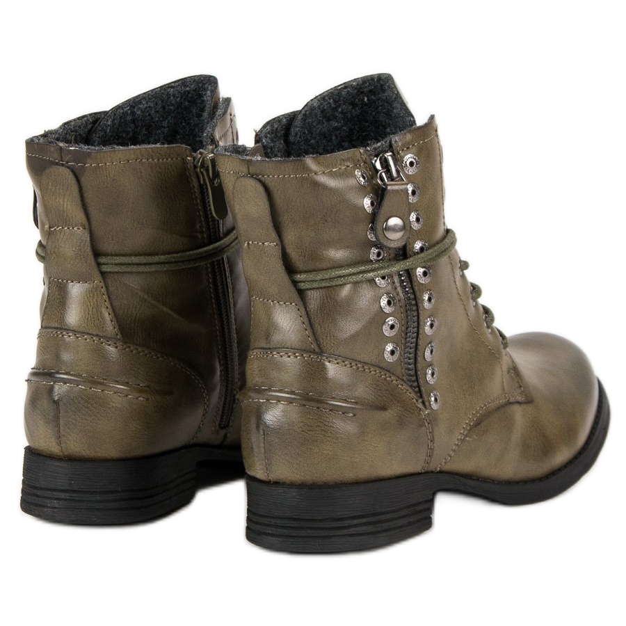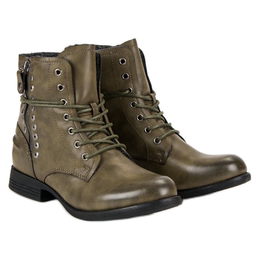 Découvrez les bottes Kayla Green Rock uniques – la combinaison parfaite de style, de confort et de fonctionnalité pour les journées plus froides. Ces bottines pour femme, confectionnées en cuir écologique dans une teinte verte très tendance, s'intégreront parfaitement à votre garde-robe en lui conférant un caractère rock.