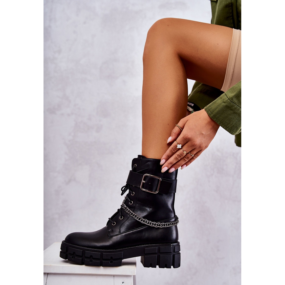 Bottines de travail à la mode PG1 avec chaîne noires Solesso est une proposition pour les femmes qui apprécient la combinaison de confort, d'originalité et d'apparence originale. Ces bottes sont le choix parfait pour les journées plus froides où nous voulons nous sentir à la fois confortables et à la mode.