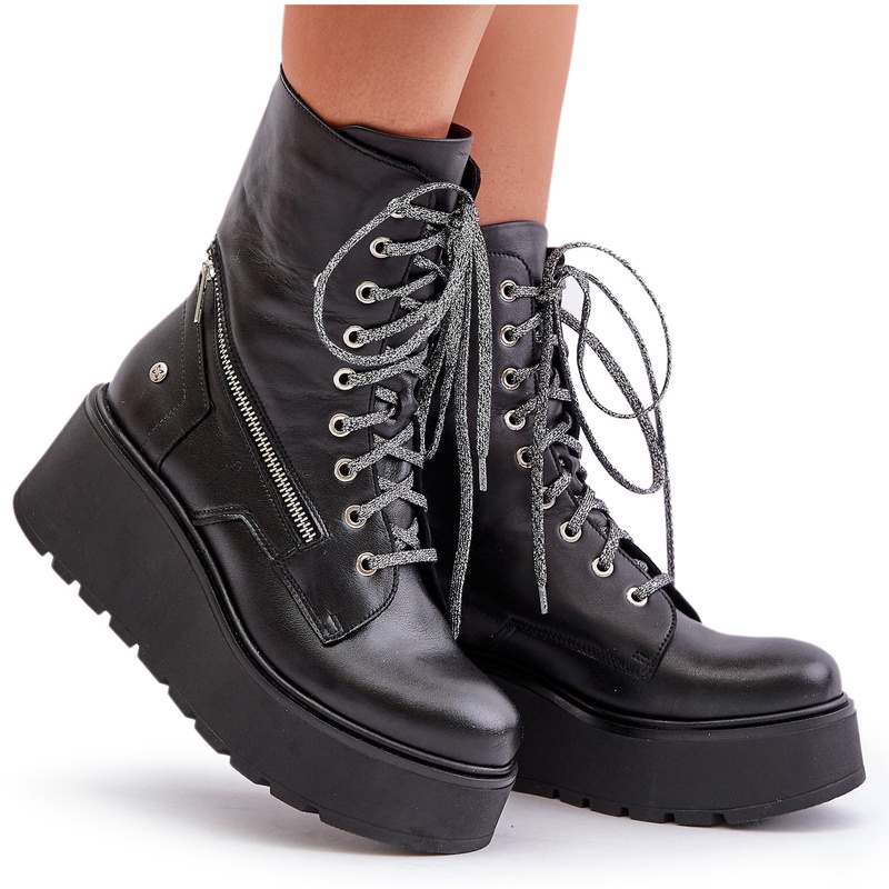 Détails: Bottes de Travail en Cuir à Plateforme et Compensée Maciejka 06676-01 Noir le noir