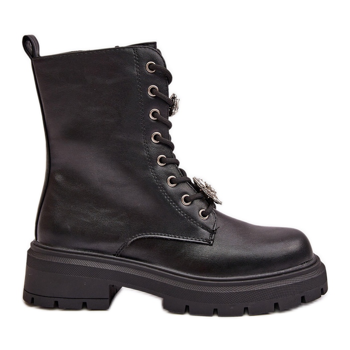 Ce modèle est extrêmement pratique grâce à la fixation de zip latérale, ce qui permet de mettre et de décoller faciles. Des lacets supplémentaires avec des épingles charmantes leur donne un caractère unique et leur permet de faire correspondre l'individu du pied. Les bottes noires se mélangent parfaitement avec une variété de stylisations pour des jours plus frais, ajoutant des notes de style rocheux à chaque look.